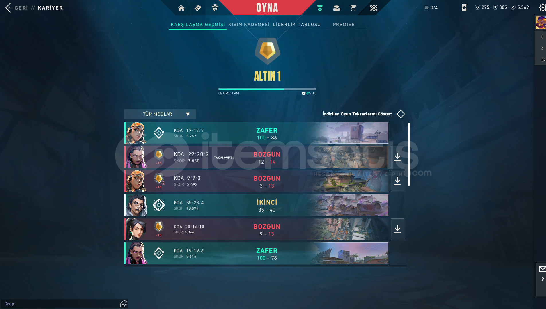 Ürün Hakkında Bilgi;İLANI SATIN ALDIĞINIZDA 7/24 OTOMATİK OLARAK TESLİM EDİLİR.RANK - GOLD 1HESAP SEVİYESİ - 92SKİN SAYISI - 6VP SAYISI - 275+ 100.000 BAŞARILI İŞLEM İLE GÜVENLE ALIŞVERİŞ YAPABİLİRSİNİZ