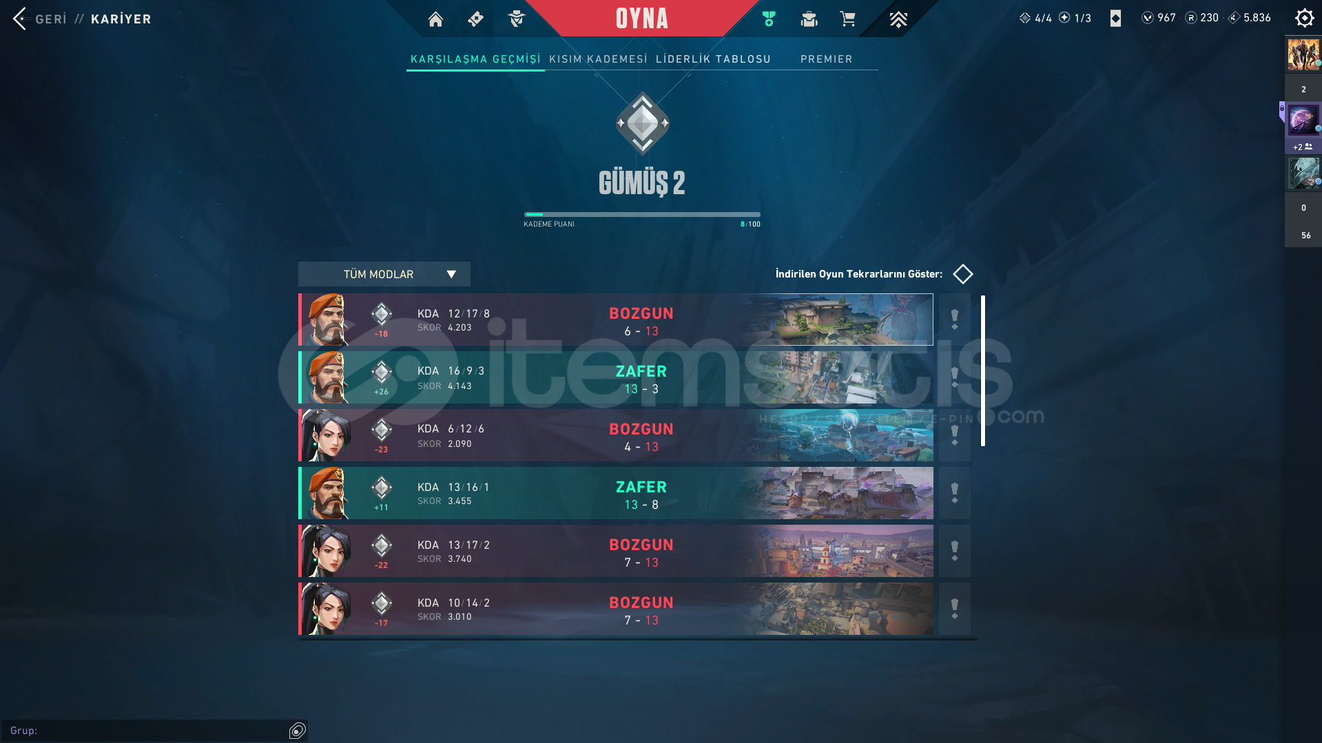 Ürün Hakkında Bilgi;İLANI SATIN ALDIĞINIZDA 7/24 OTOMATİK OLARAK TESLİM EDİLİR.RANK - GÜMÜŞ 2 HESAP SEVİYESİ - 58SKİN SAYISI - 3VP SAYISI - 967+ 100.000 BAŞARILI İŞLEM İLE GÜVENLE ALIŞVERİŞ YAPABİLİRSİNİZ