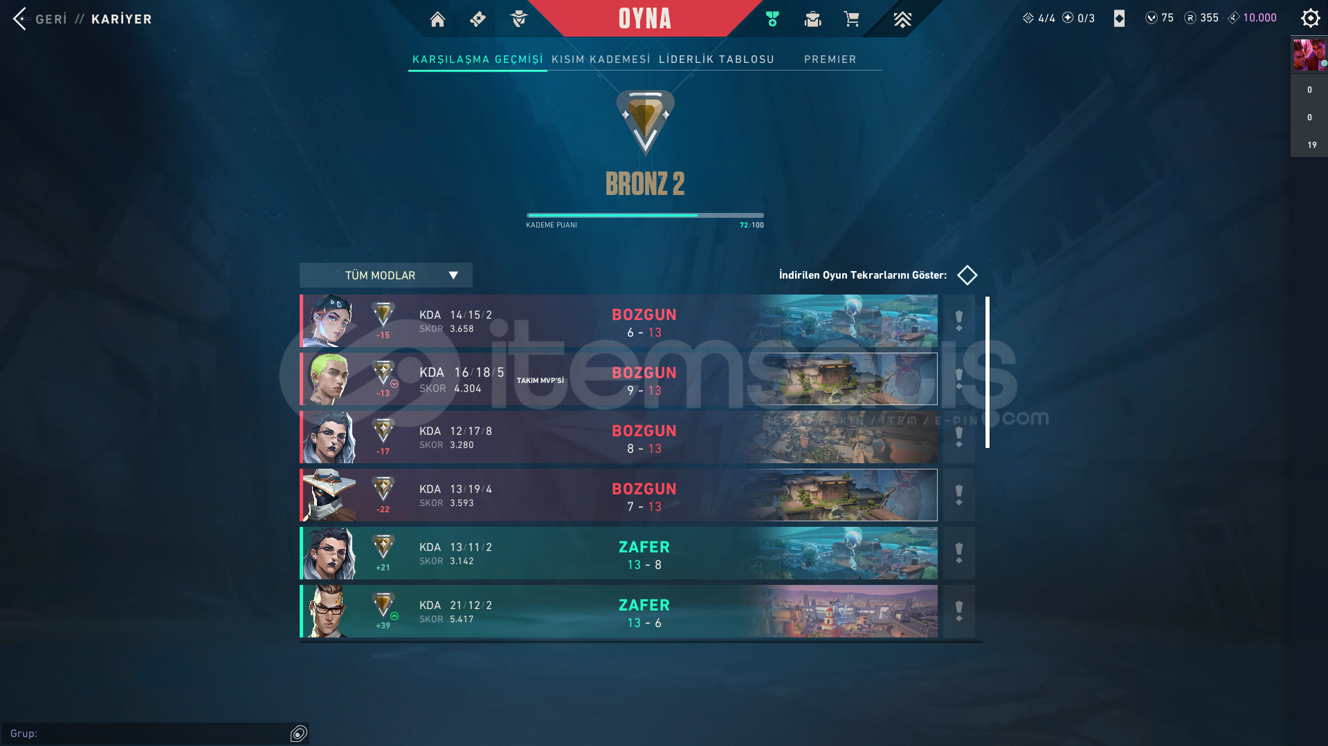 Ürün Hakkında Bilgi;İLANI SATIN ALDIĞINIZDA 7/24 OTOMATİK OLARAK TESLİM EDİLİR.RANK - BRONZ 3HESAP SEVİYESİ - 102SKİN SAYISI - 6VP SAYISI - 75+ 100.000 BAŞARILI İŞLEM İLE GÜVENLE ALIŞVERİŞ YAPABİLİRSİNİZ
