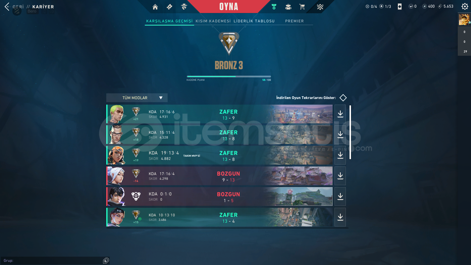 Ürün Hakkında Bilgi;İLANI SATIN ALDIĞINIZDA 7/24 OTOMATİK OLARAK TESLİM EDİLİR.RANK - BRONZ 3HESAP SEVİYESİ - 128SKİN SAYISI - 6VP SAYISI - 0+ 100.000 BAŞARILI İŞLEM İLE GÜVENLE ALIŞVERİŞ YAPABİLİRSİNİZ