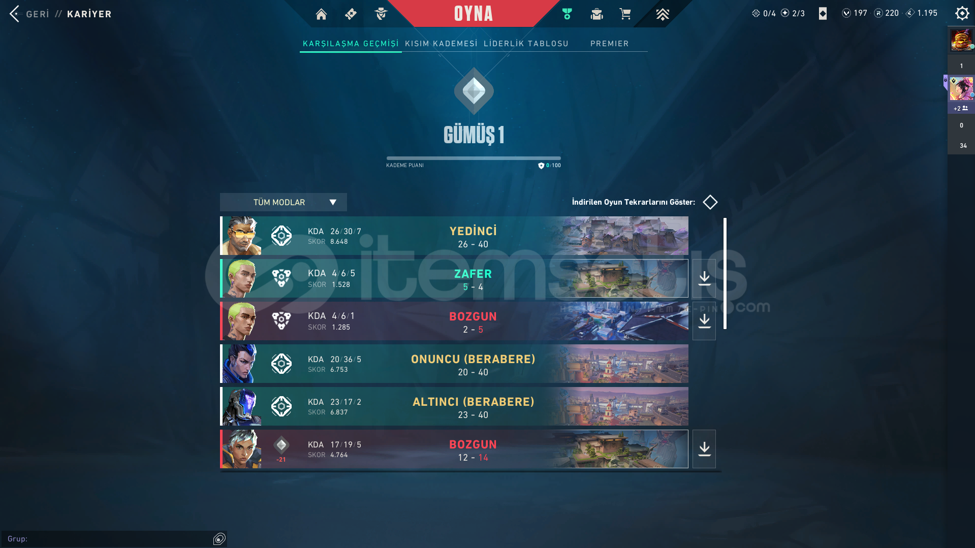 Ürün Hakkında Bilgi;İLANI SATIN ALDIĞINIZDA 7/24 OTOMATİK OLARAK TESLİM EDİLİR.RANK - GÜMÜŞ 1HESAP SEVİYESİ - 65SKİN SAYISI - 2VP SAYISI - 197+ 100.000 BAŞARILI İŞLEM İLE GÜVENLE ALIŞVERİŞ YAPABİLİRSİNİZ