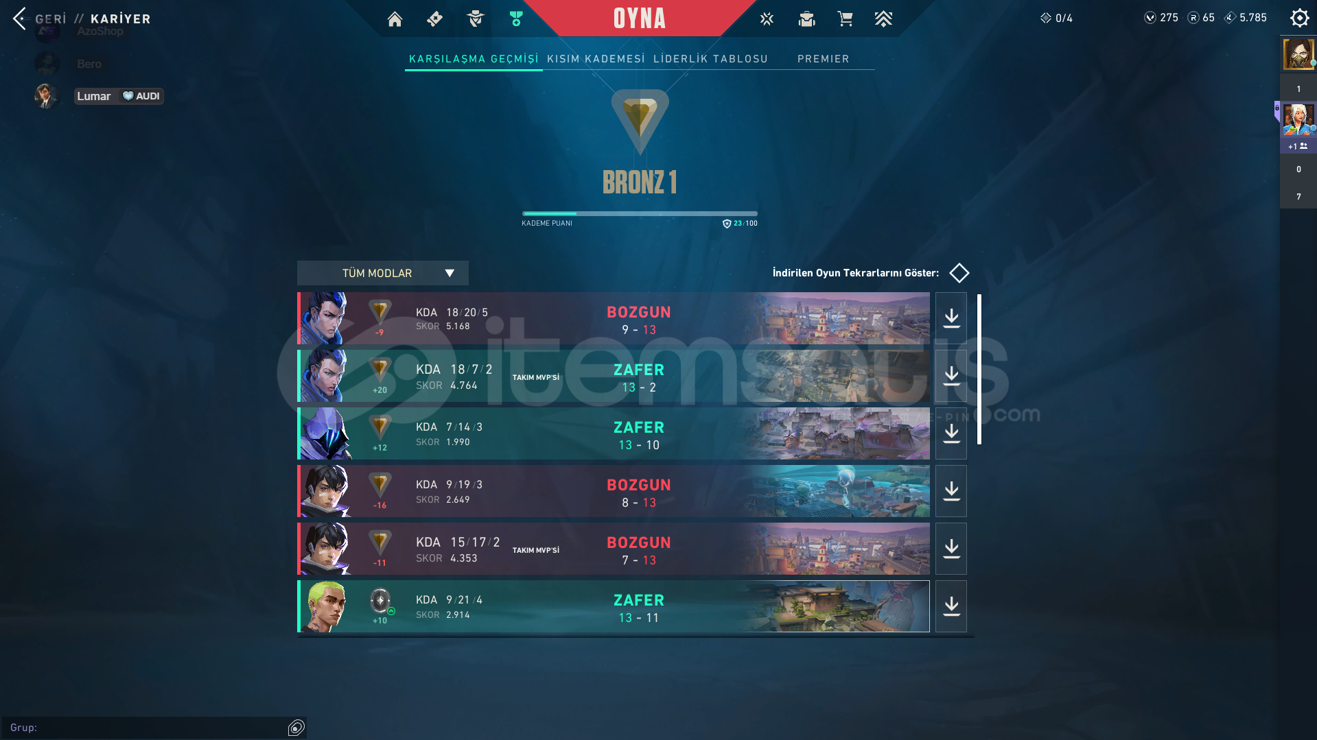 Ürün Hakkında Bilgi;İLANI SATIN ALDIĞINIZDA 7/24 OTOMATİK OLARAK TESLİM EDİLİR.RANK - BRONZ 1HESAP SEVİYESİ - 35SKİN SAYISI - 2VP SAYISI - 275+ 100.000 BAŞARILI İŞLEM İLE GÜVENLE ALIŞVERİŞ YAPABİLİRSİNİZ