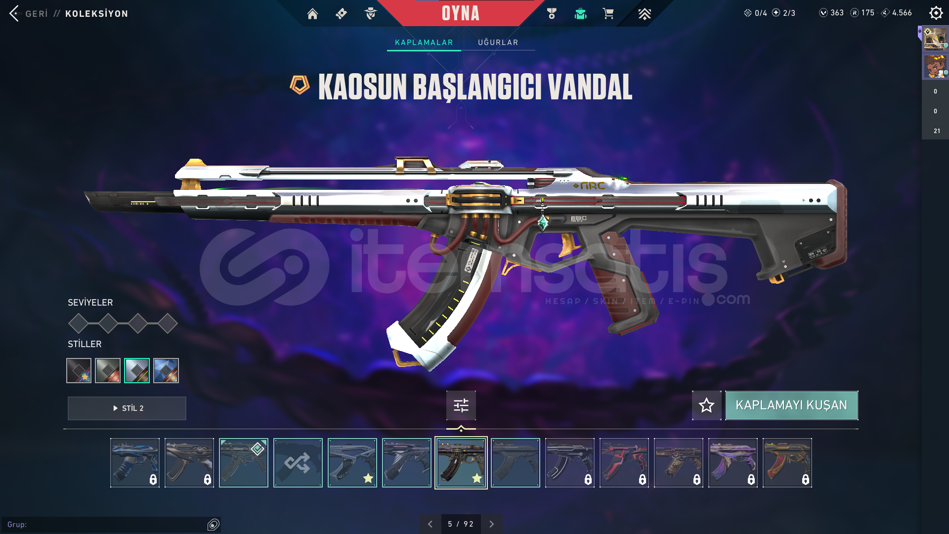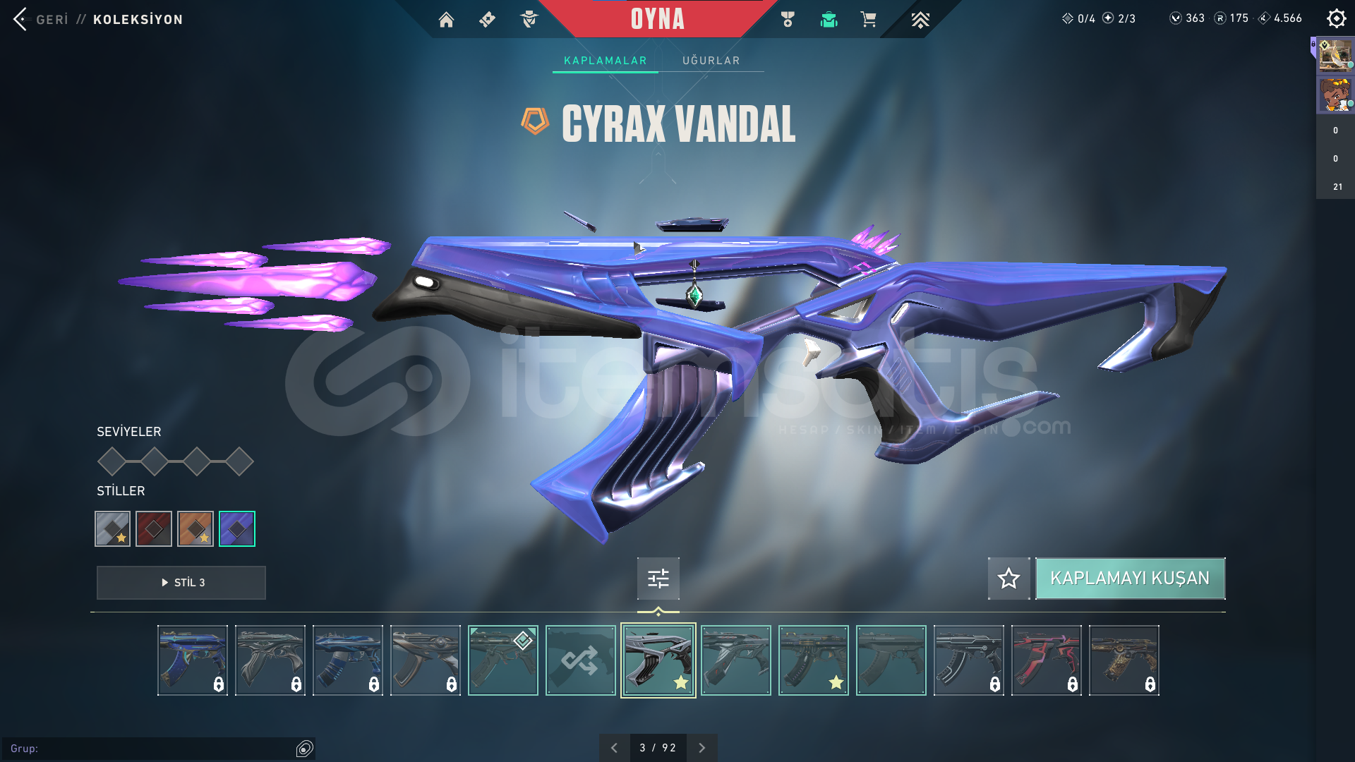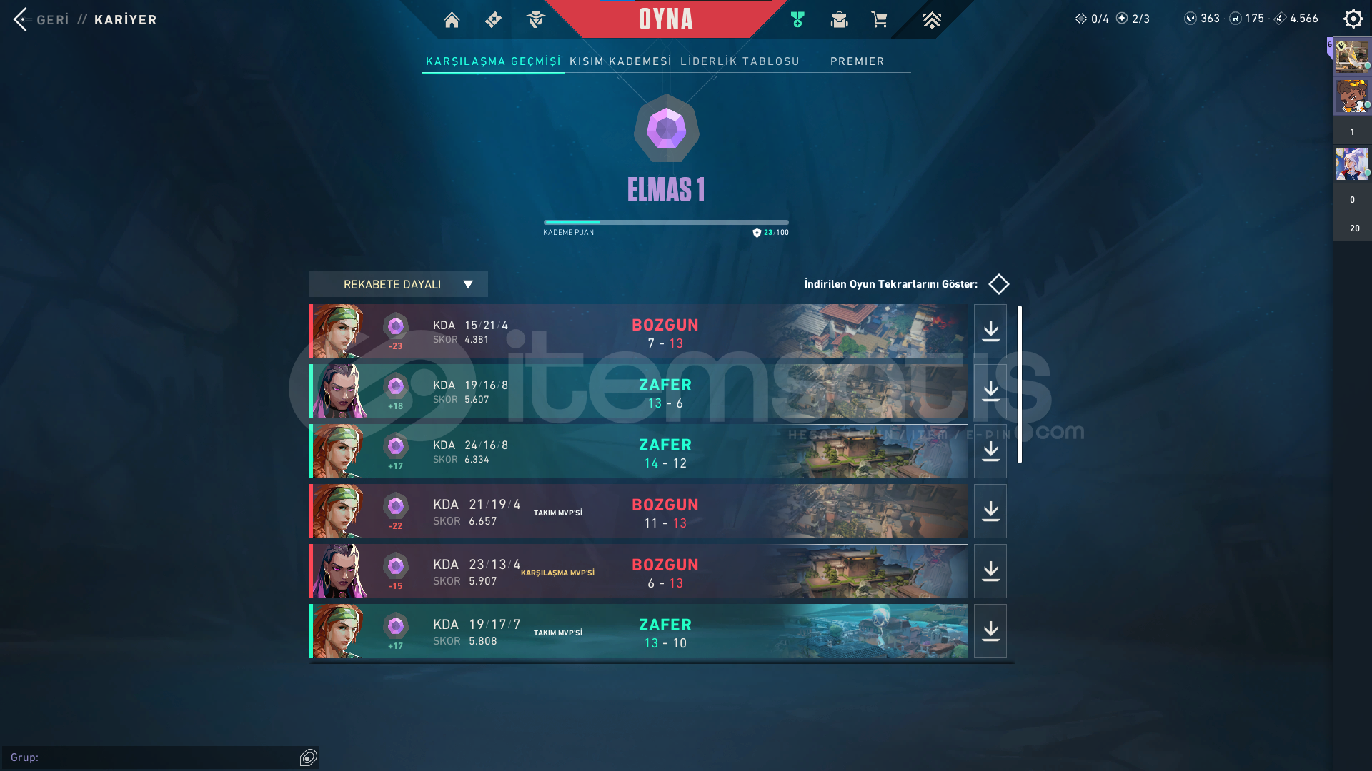 HESABIN RANKI DİAMOND'DUR.-Geçmiş Sezonlarda (Ep 9.) Yücelik uğurluğu vardır-HESAP İÇİNDEKİLER:-Soğuk Çelik Vandal-Cyrax Vandal-Kaos Vandal-Fatih Phantom-Yıkım Elçisi Sherrif-Yıldızparçalayan-Ecelin Isırığı Bıçak-Ayıcıklı BattlePassSATIN ALIMLARDA HIZLICA TESLİMAT SAĞLANIRGERİ ÇEKİLME DURUMLARI SÖZ KONUSU DE&#...