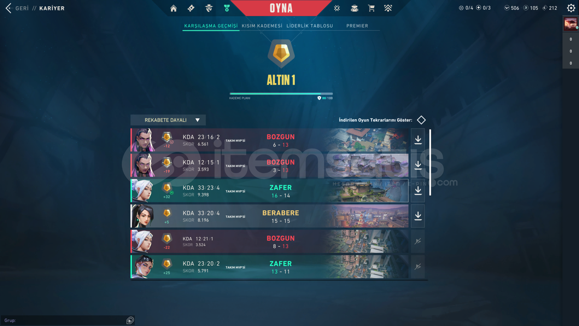 Hesap içerisinde 506 VP 105 Radyanit puanı vardır