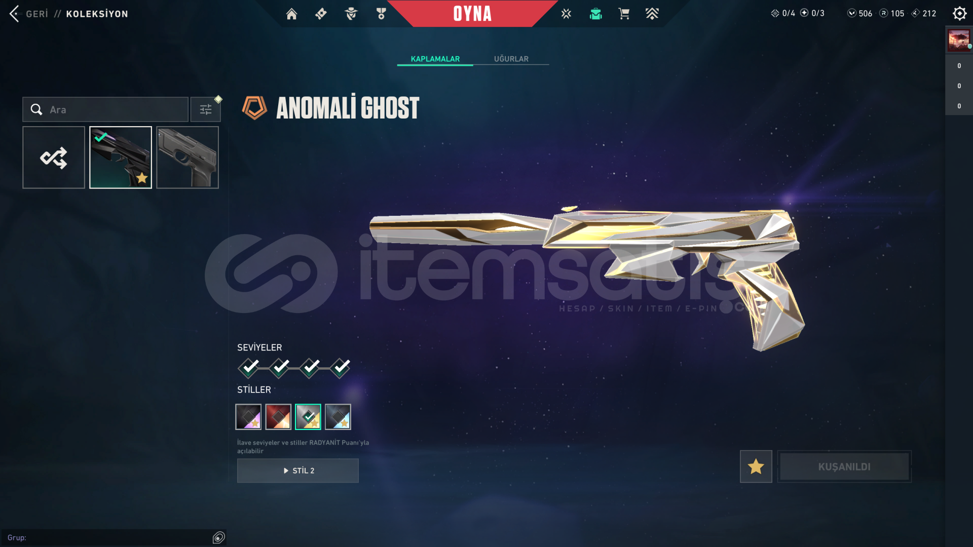 ⭐ Hesap türkiye serveri, ban yok, EPosta şifre değişir, Lig altın 1 , Fiyatta pazarlık vardır sorularınız için mesaj atınız⭐ Hesap içerisinde 506 VP 105 Radyanit puanı vardır⭐Hesaptaki skinler :Vandal : Kaos VandalGhost : Anomali GhostBıçak : Yağmacı bıçak