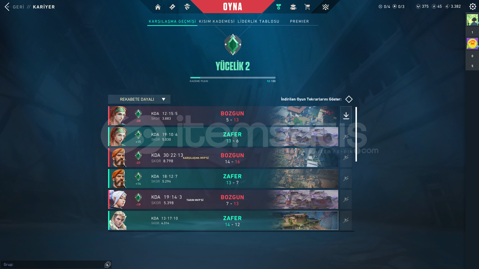 Yücelik 2 - 12rr 57Lvlİlk sahibiyim oyunu bıraktığım için satıyorum. İlk maili bana ait kanıtlı fakat verilmeyecek. Hesap açılırken yollanan Riot Games' e hoşgeldiniz e-postasını göndereceğim.Hesapta 375vp daha var.Kaos Vandal / Gaia VandalYağmacı Karambit / Ruyi SopasıYağmacı SheriffYağmacı OperatorEvori GhostZifiri Phantom2x Battlepass