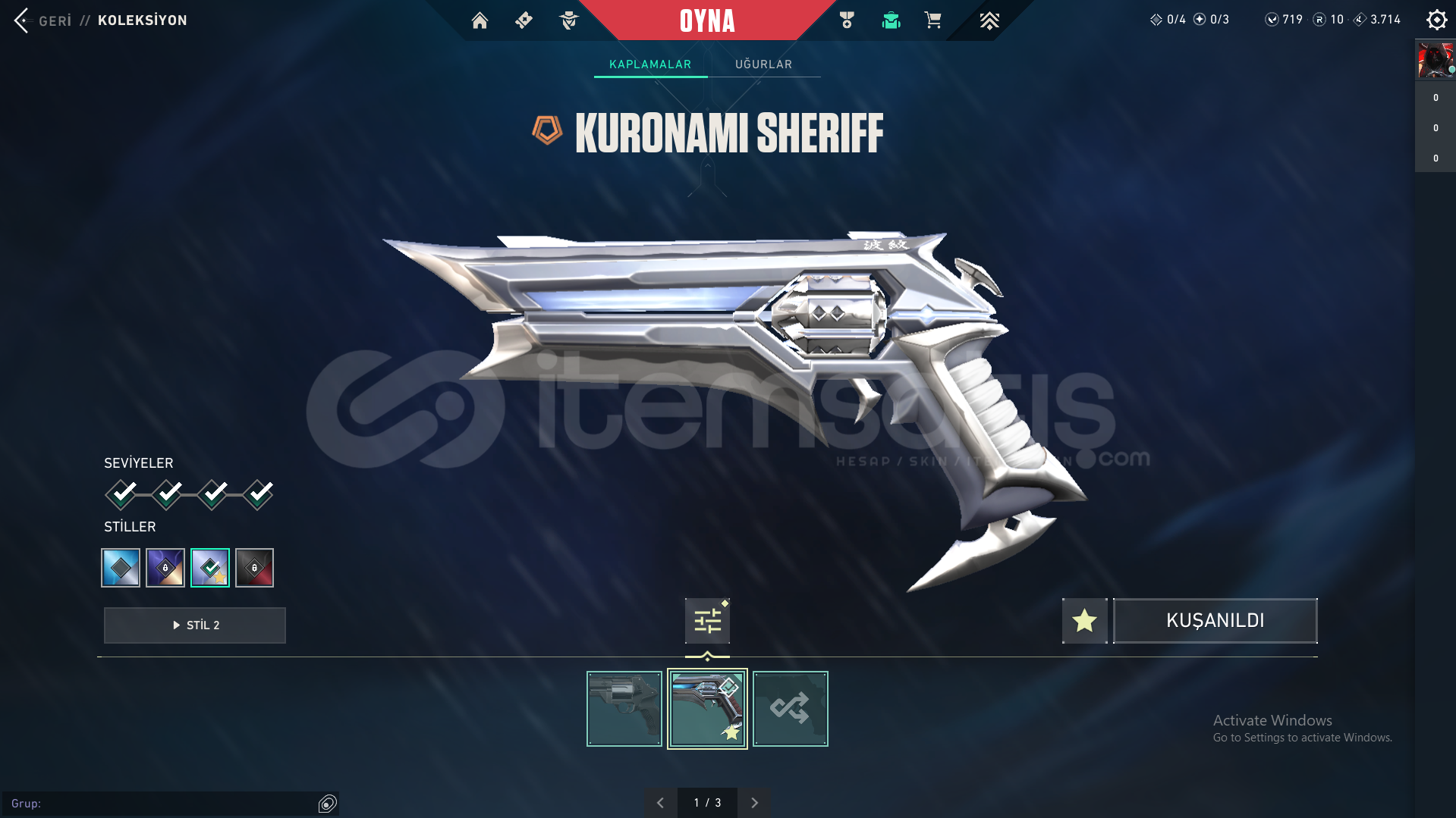 HESAPTA KAOSUN BAŞLANGICI VANDAL, YILDIZ BELASI VANDAL, YAĞMACI KARAMBİT, YİTİK RİTÜEL BIÇAK, ZİFİRİ PHANTOM, KURONAMİ SHERİFF, ULUPENÇE GHOST, ŞİMŞEK SPECTRE, CYRAX GUARDİAN ve BATTLEPASS BULUNMAKTADIR.