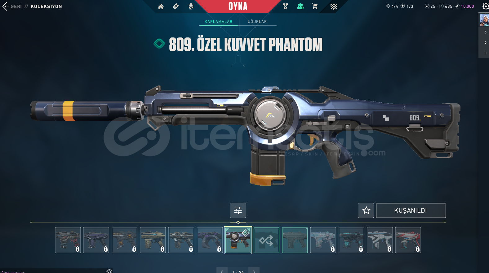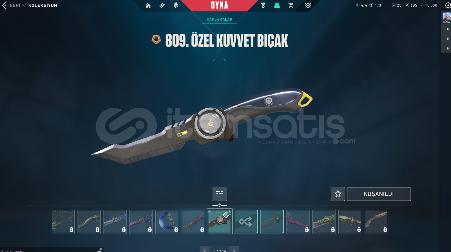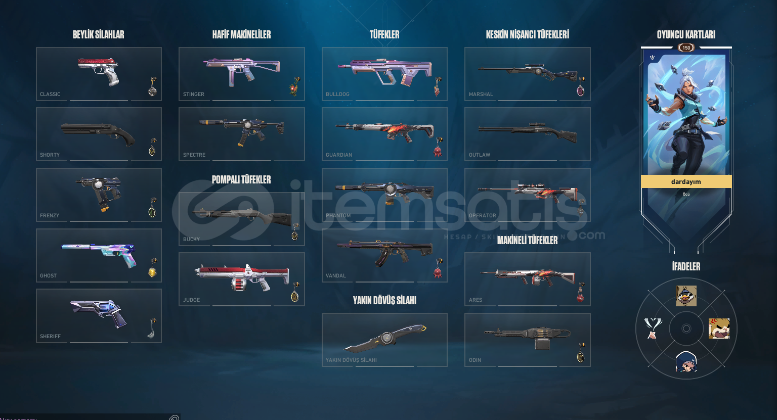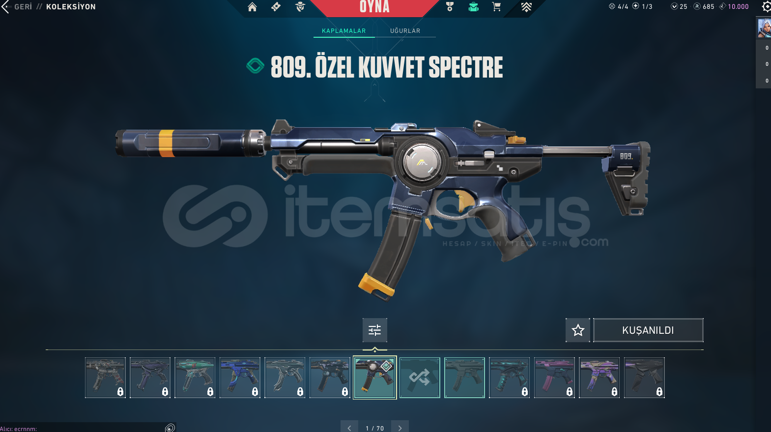 • SKİNLER: Kaos Vandal, 809. Özel Kuvvet Bıçak, Pırpır Ghost(Kelebek Sevenlere), Simli Classıc +809 BPSİ FULLENMİŞTİR!