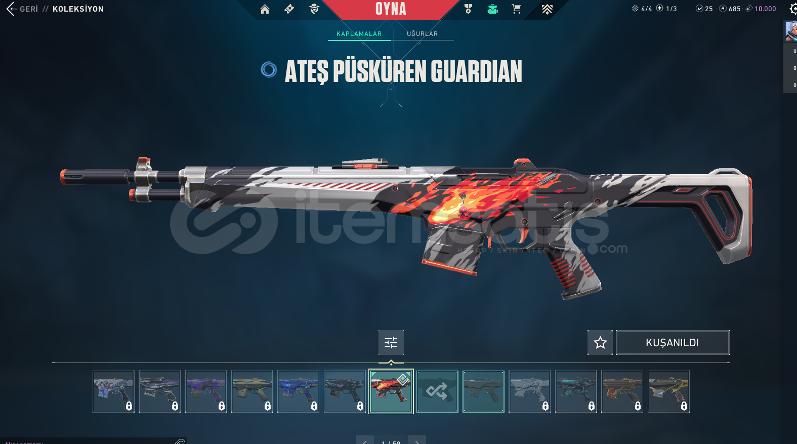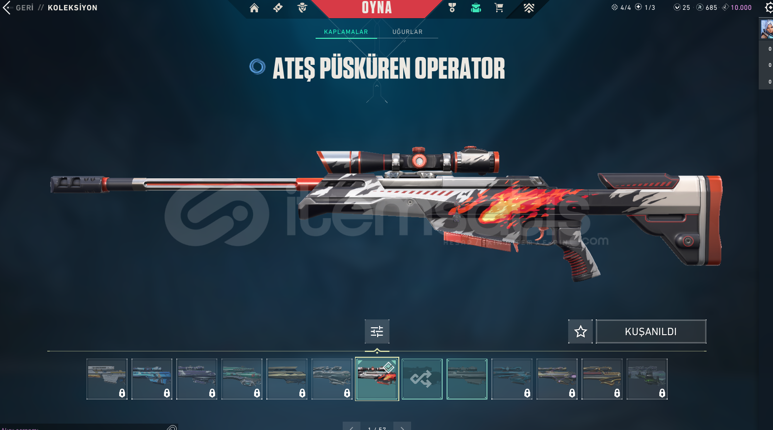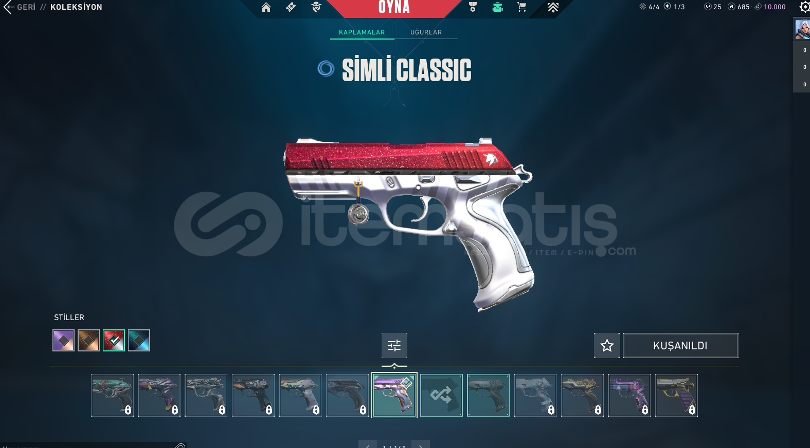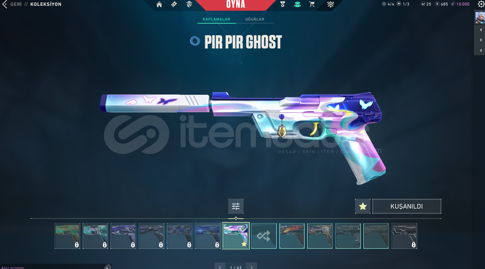 • SKİNLER: Kaos Vandal, 809. Özel Kuvvet Bıçak, Pırpır Ghost(Kelebek Sevenlere), Simli Classıc +809 BPSİ FULLENMİŞTİR!