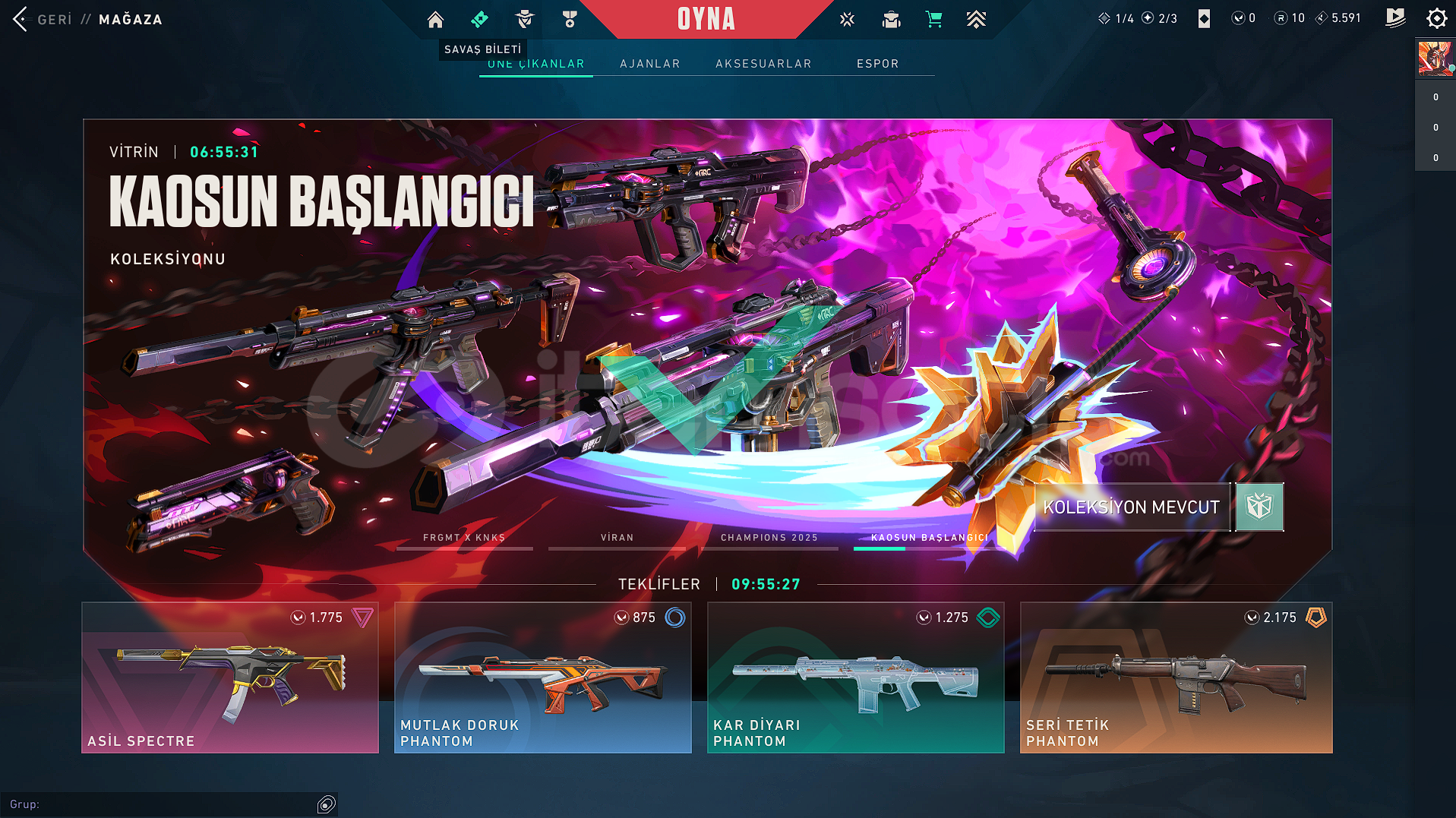 KAOSUN BAŞLANGICI FULL SET + FAZ KORUYUCU VANDAL + GÜNCEL BATTLE PASS MEVCUTTUR. TERTEMİZ SIFIR HESAPTIR HENÜZ 11 LEVELDİR 20DE DERECELİSİ AÇILIR. MAİL DEVRİ YAPILACAKTIR. CEP NO VS. KAYITLI DEĞİLDİR.