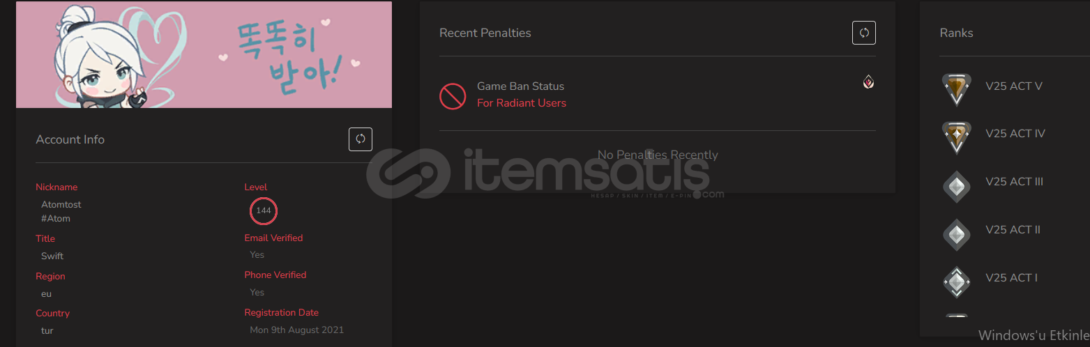 • Bu ilandaki hesap Türkiye sunucusundadır.