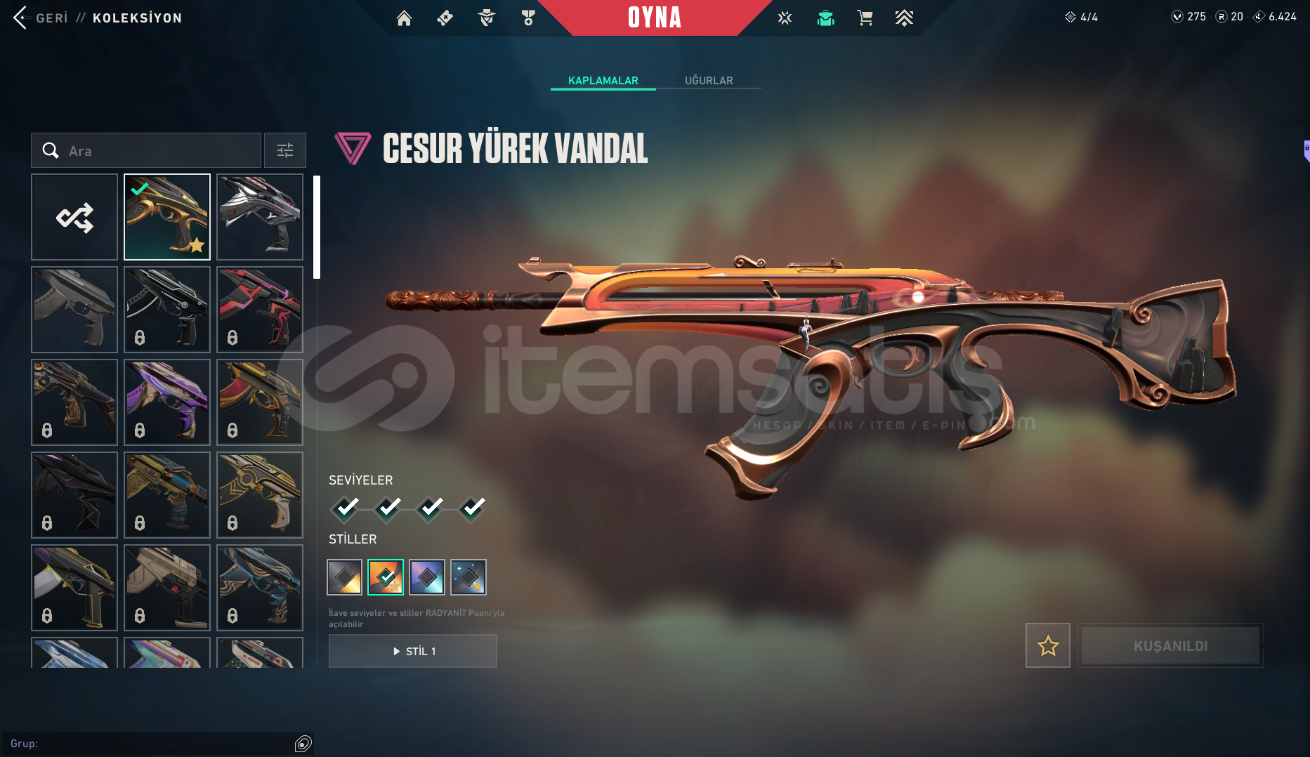 Hesapta Yağmacı Karambit-Cesur Yürek Vandal-Sır Çiçeği Sheriff Ve Opretatör var oyunu bıraktım hesabı ucuza veriyorum. Pazarlık Yapılır
