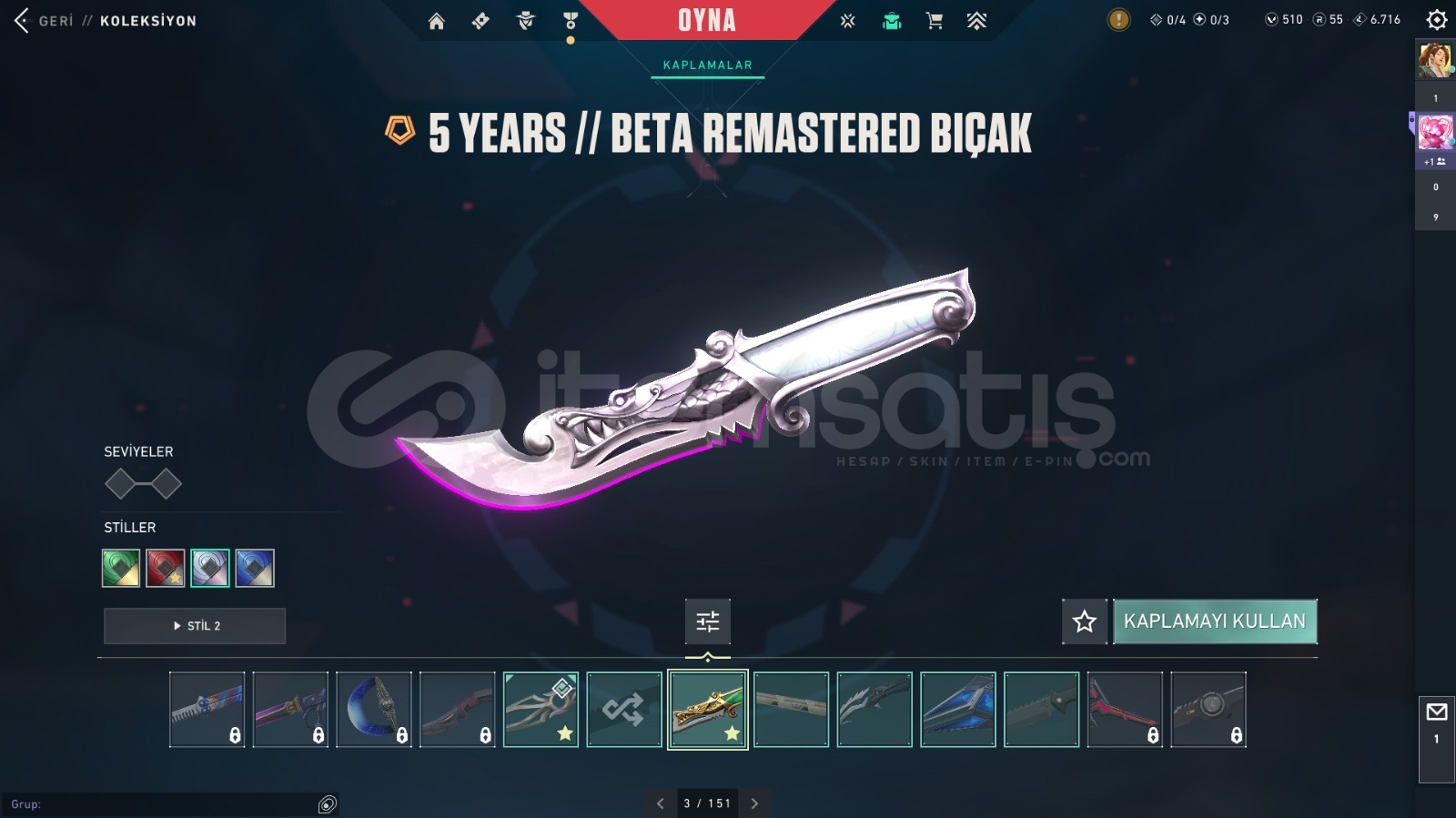 -Hesaptaki Skinler Fotoğraflarda Gösterilmiştir