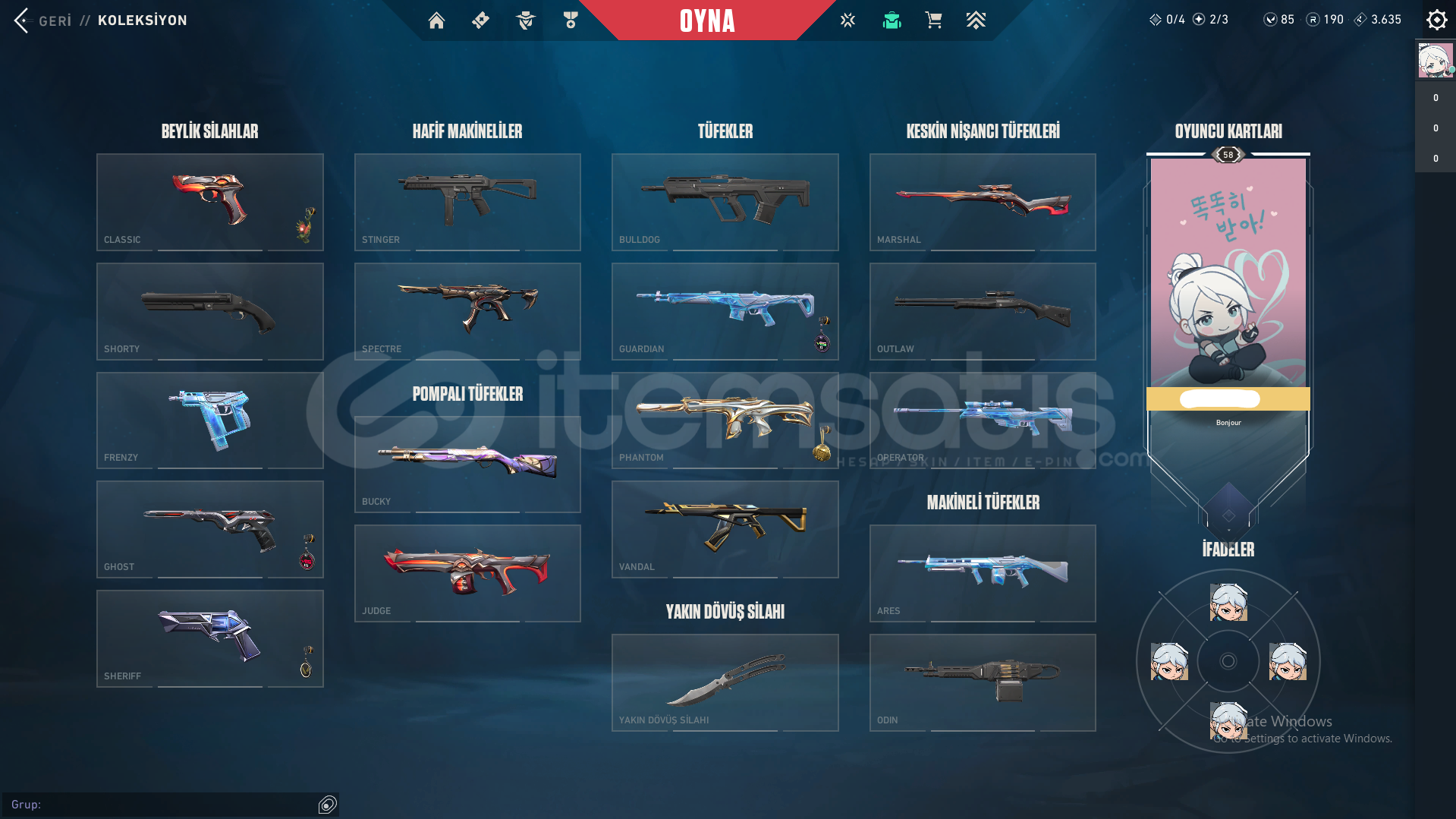 Hesabın rankı Altın'dırChampions 2025 Vandal, Karaborsa Kelebek, Fatih Phantom, Helezon Spectre, 1 Full BattlepassHiçbir sıkıntı olmaz. Yeni mailinizi koyarak hesabı devir alabilirsiniz.Hesaba giriş yaparken ekran kaydı almanız önerilir aksi takdirde yardımcı olamayız.Telefon bağlıdır değişmiyordur ama herhangi bir sorun olmazAlıcısına şimdiden hayırlı olsun..