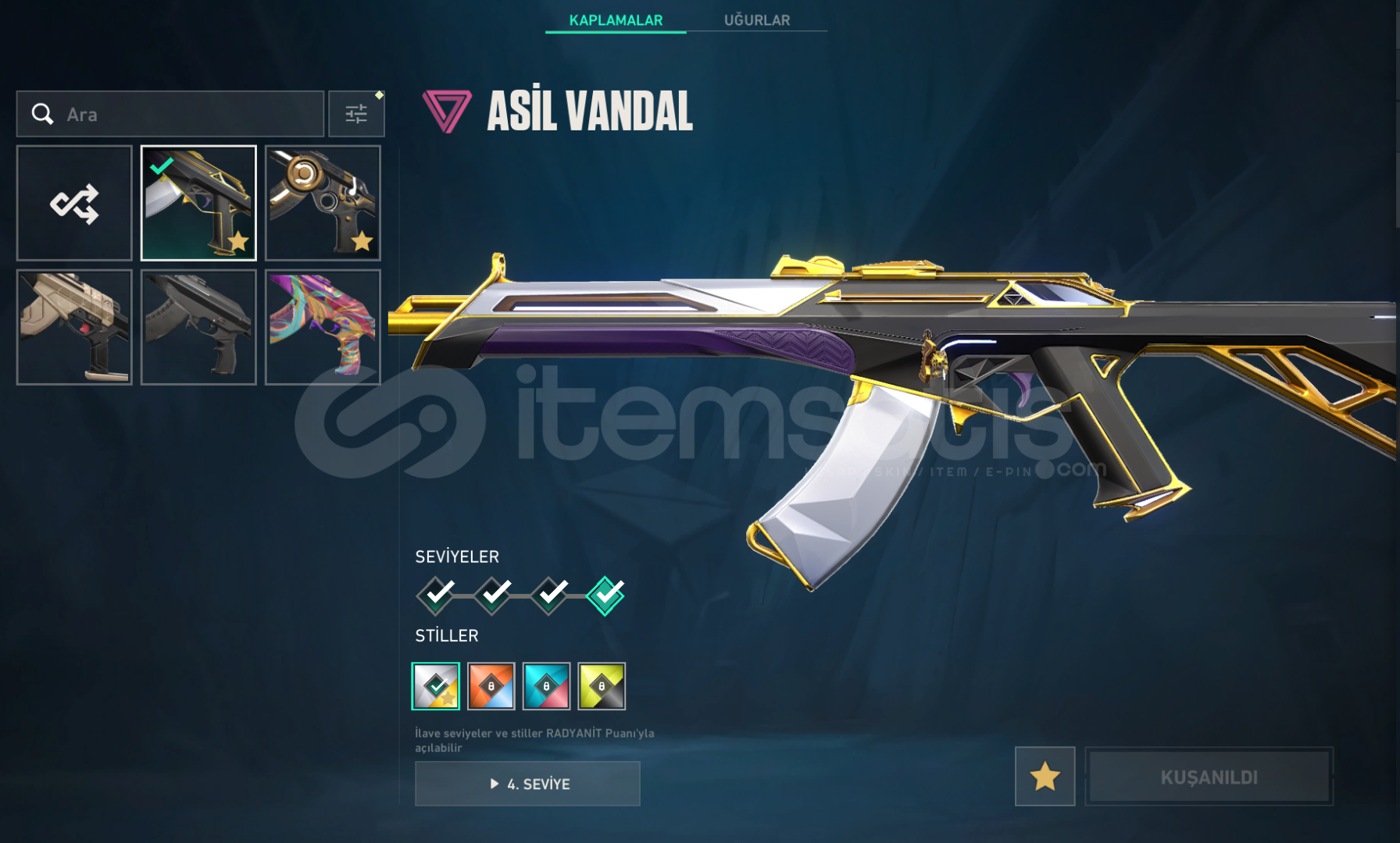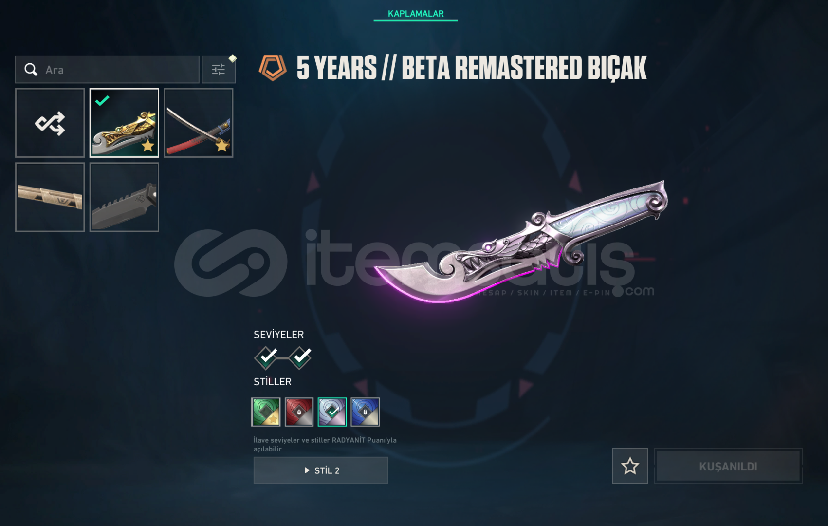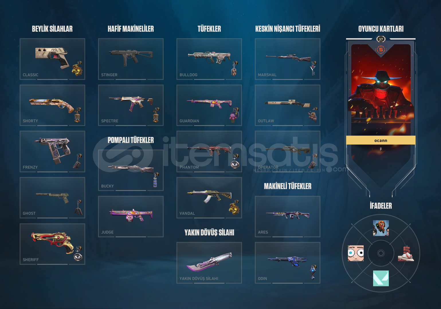 artık oyanmıyorum o sebepten satıyorum.hesap rank geçmişi çöp bronz felandı en son.hiç ban felan yemedi.hesaptaki değerli skinlerin ekran görüntüsünü ekledim ama yinede hesaptak skinleri aşağaya yazıyorum-ŞENLİK VANDAL (KOLEKSİYON DEĞERİ ÇOK YÜKSEK)-ASİL VANDAL-KÖKEN VANDAL-YAĞMACI PHANTOM-5 YIL ÖZEL BETA REMASTERED BIÇAK-ONİ KATANA ...
