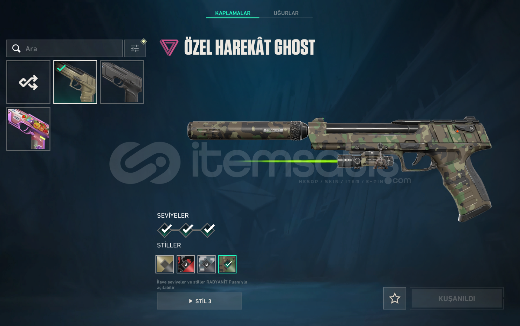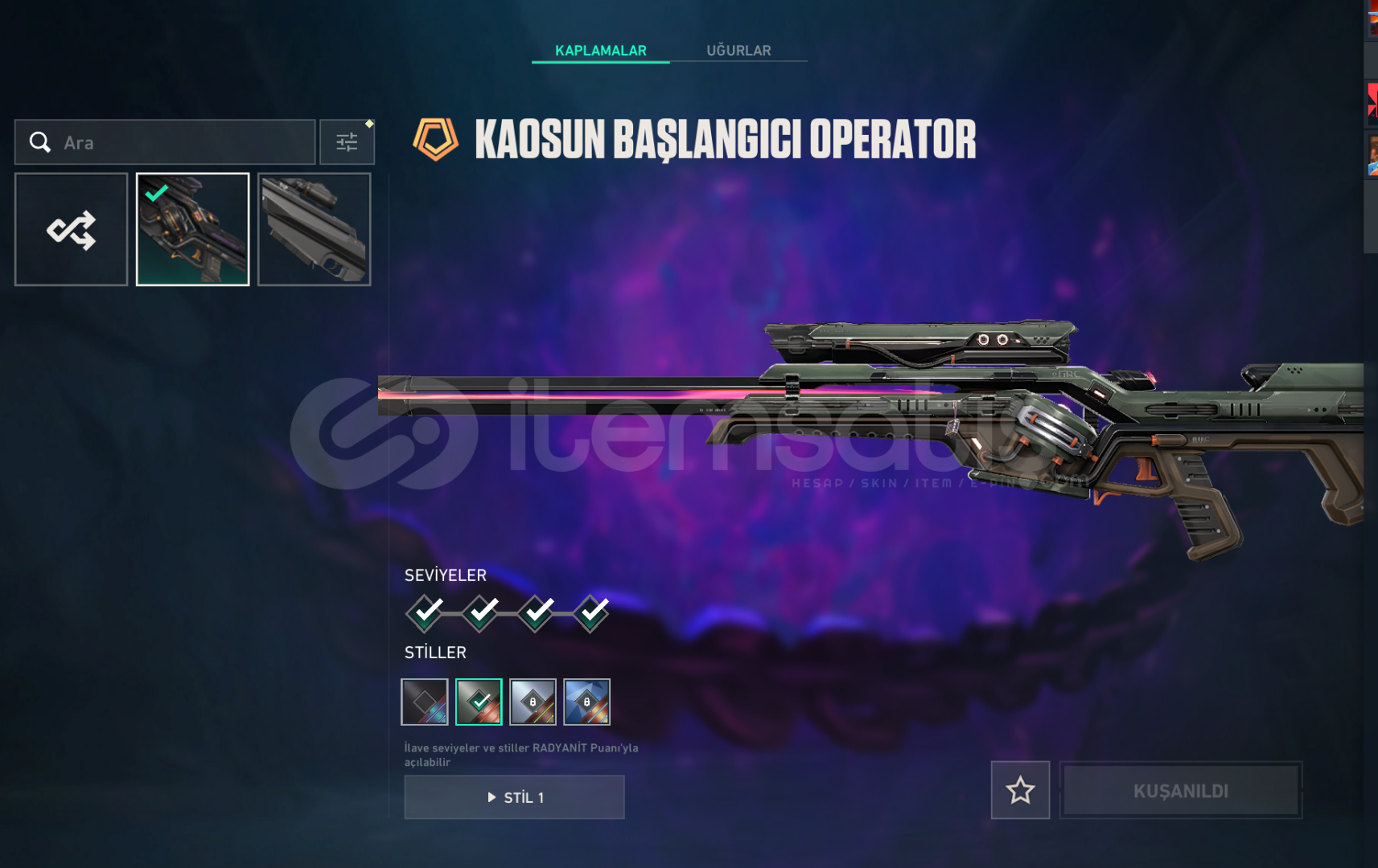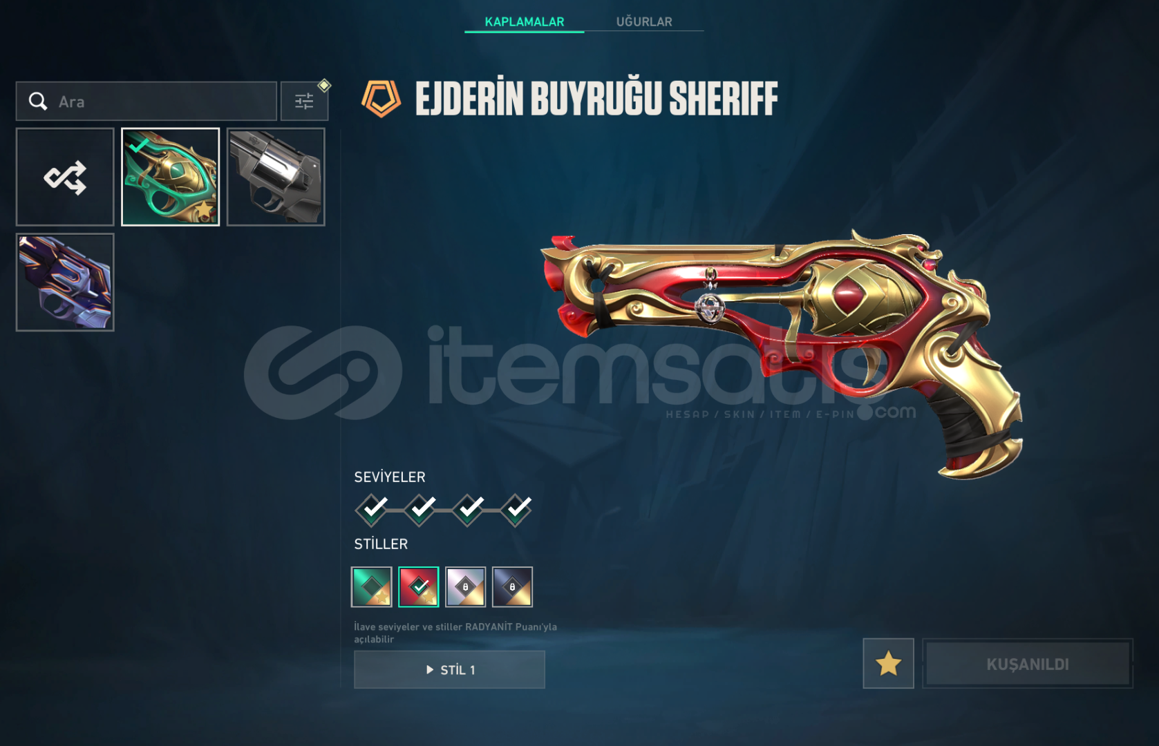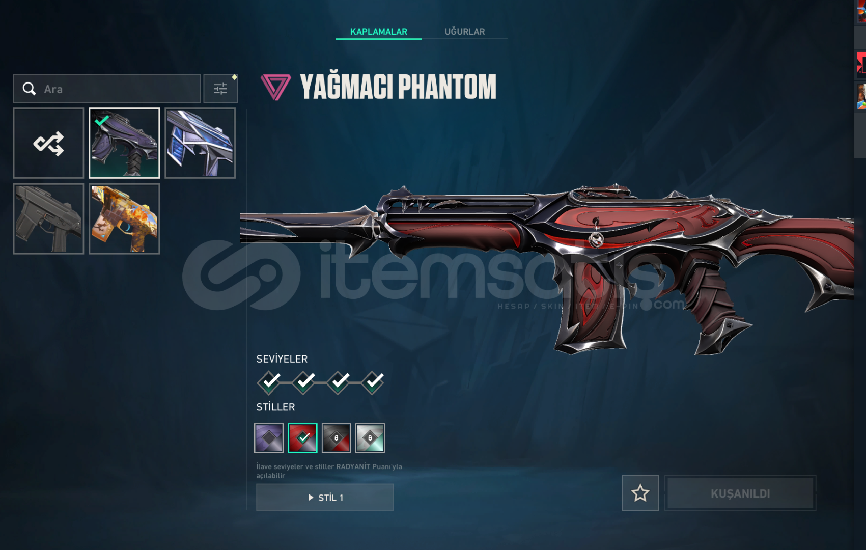 hesaptaki değerli skinlerin ekran görüntüsünü ekledim ama yinede hesaptak skinleri aşağaya yazıyorum