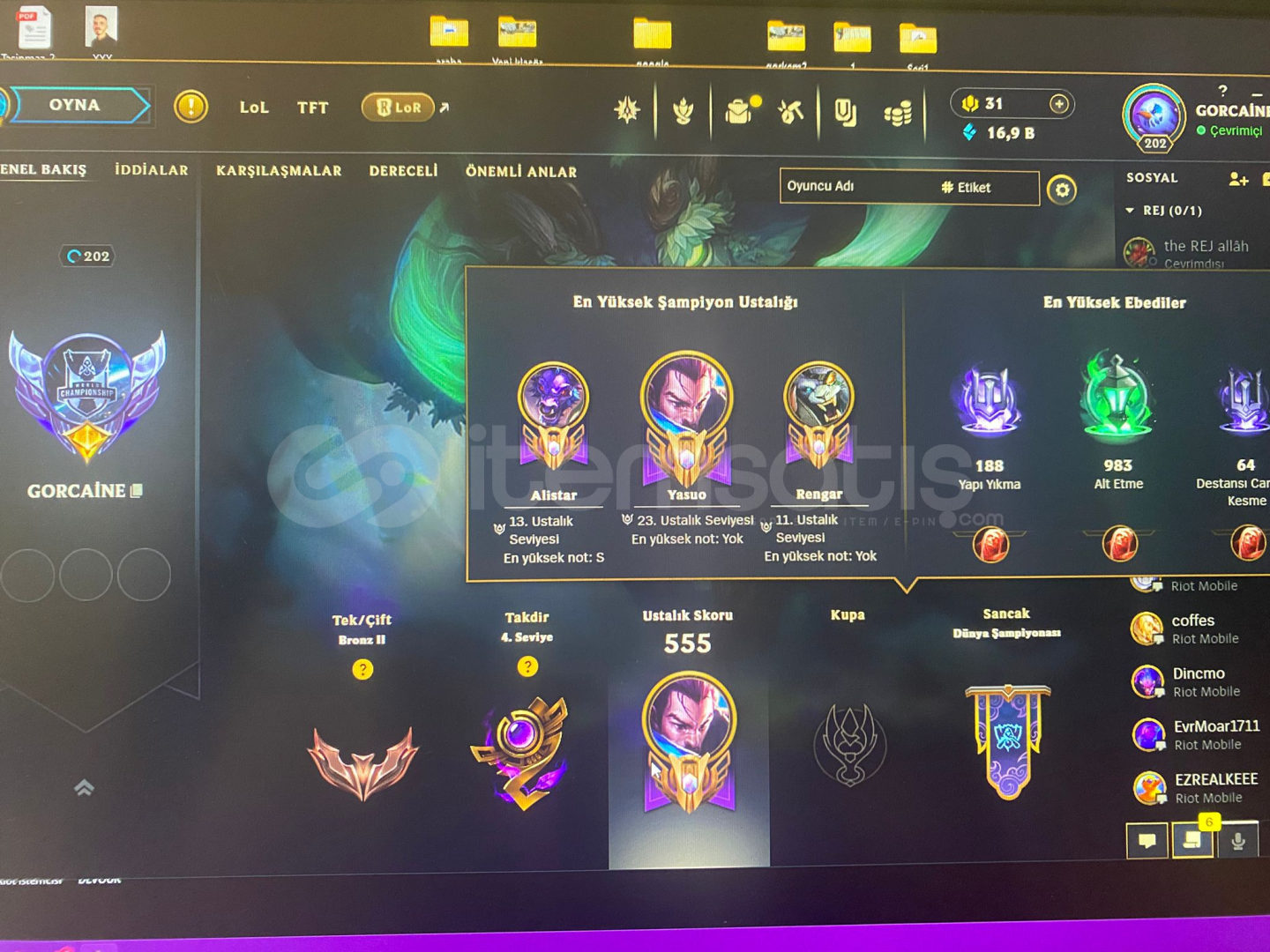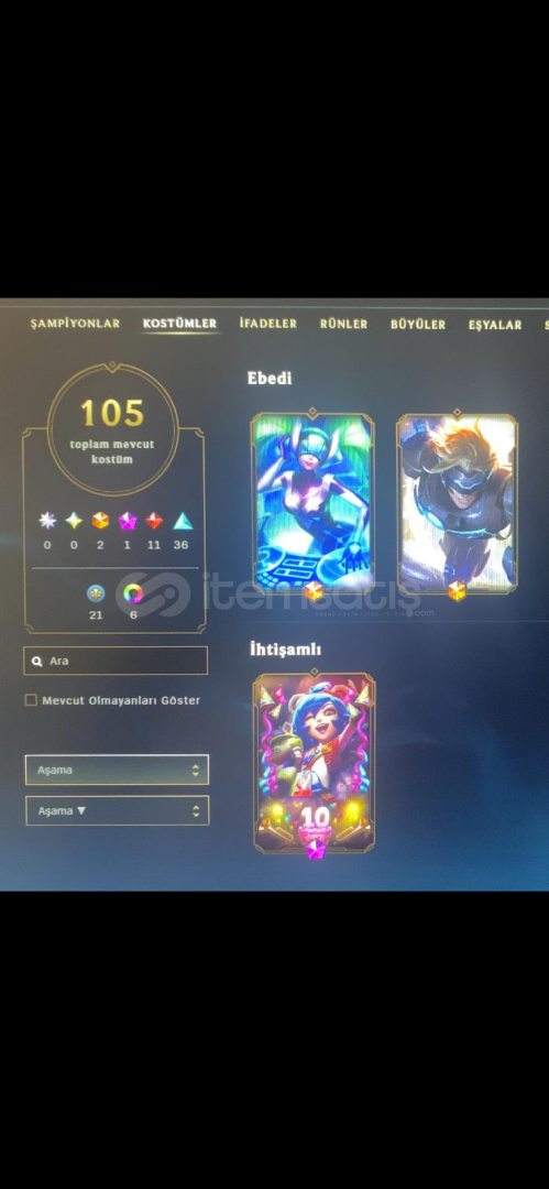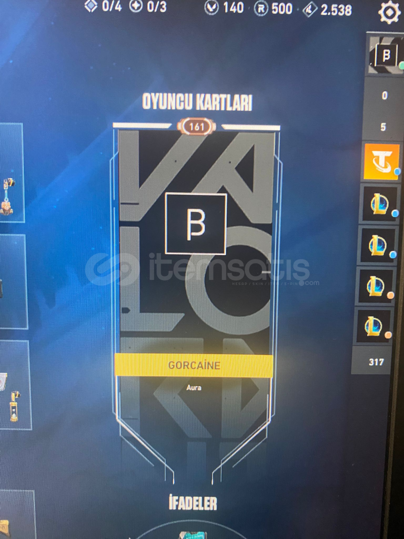 Lol VALORANT PAZARLIK MEVCUTTUR105 kostum açıktır loldebütün şampiyonlar açıktır555 ustalık skoru2014 e uzanan sımgeler ve kostümler2 ebedı11 efsanevi36 destansı202 sevıye hesapVALORANT KOLEKSİYONCULAR İÇİN TAMilk champions seti vandal karambitarcane sheriffBETA kartıve 2 battle pass ve köken op mevcutturgümüş ligi 161 sevıyededir
