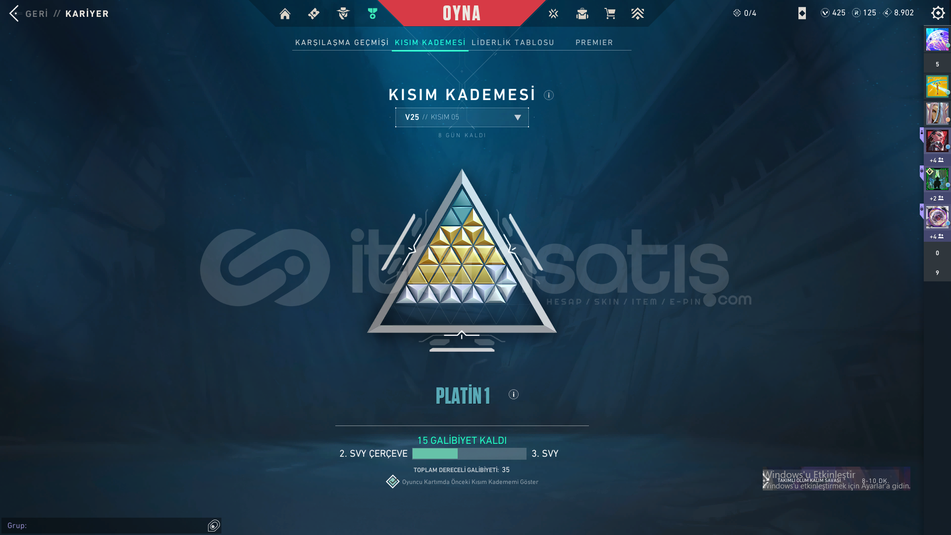 KRONOMİ VANDAL + PLAT YÜKSEK MMR HESAP