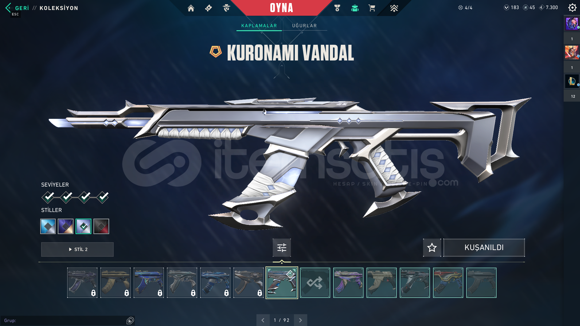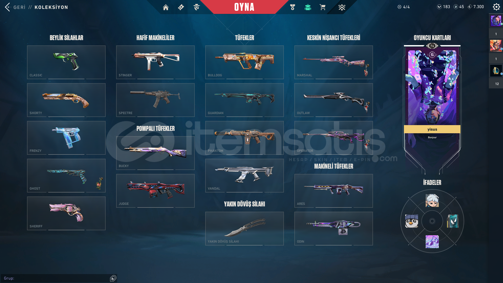 Valorant skinli E-Postalı hesaptırKURANOMİ VANDAL ONİ VANDAL SİHİRPUNK PHANTOM YILDIZ BELASI OPERATOR AFET GUARDİAN SIR ÇİÇEĞİ SHERİFF GAİA GHOST KURANOMİ BIÇAK KARABORSA KELEBEK BULUNAN HESAPTIR.Rank: BRONZ 3Sunucu: TRMağaza: EUMailli hesaptır bilgileri size devredilmektedir, mevcut bilgileri kendi bilgileriniz ile değiştirebilirsiniz.Ürünler fotoğraftakiler ile bire bir ayn&...