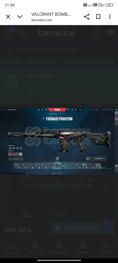 Kuranomi Vandal ve yağmacı phantom TR hesap 136 Sv tüm ajanlar açık pass skinleri fln da var Altın 1