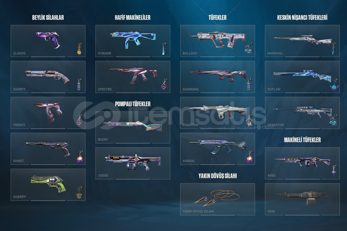 Aşağıda yazılan ve görsellerdeki skinler mevcuttur.