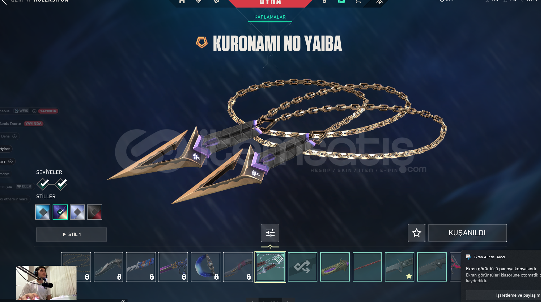 oni vandal kuronami vandal ve 4 bıçaklı hesap ayrıyeten ışık muhafızları op