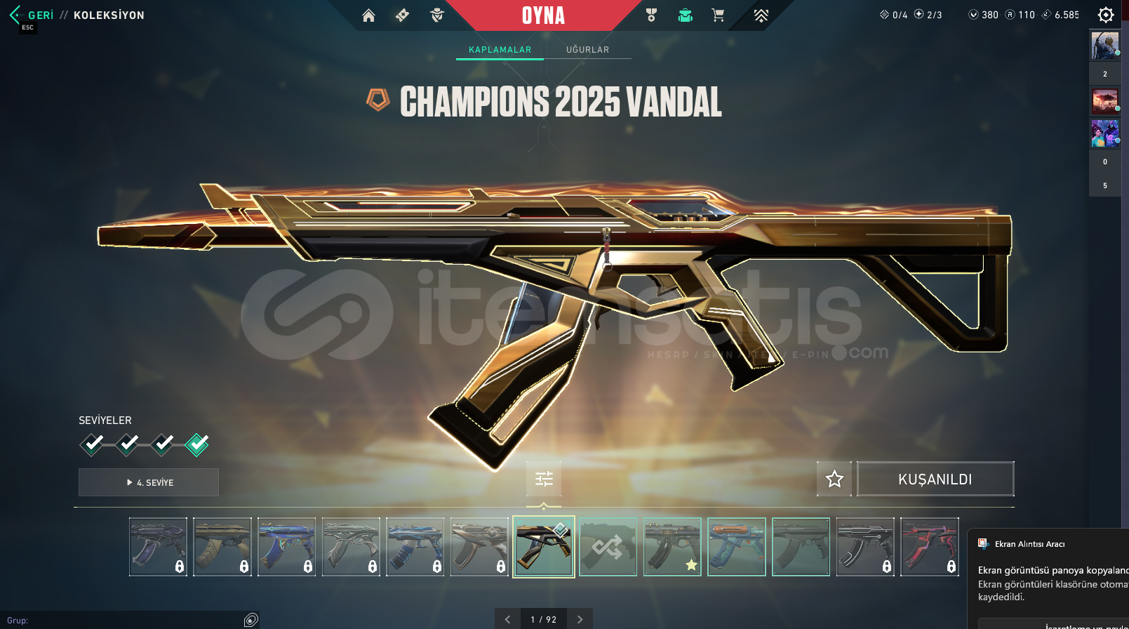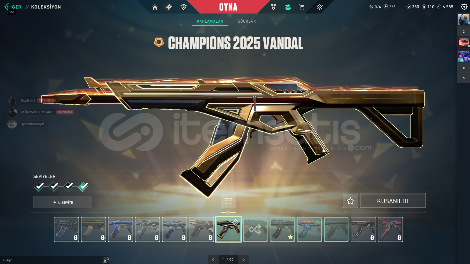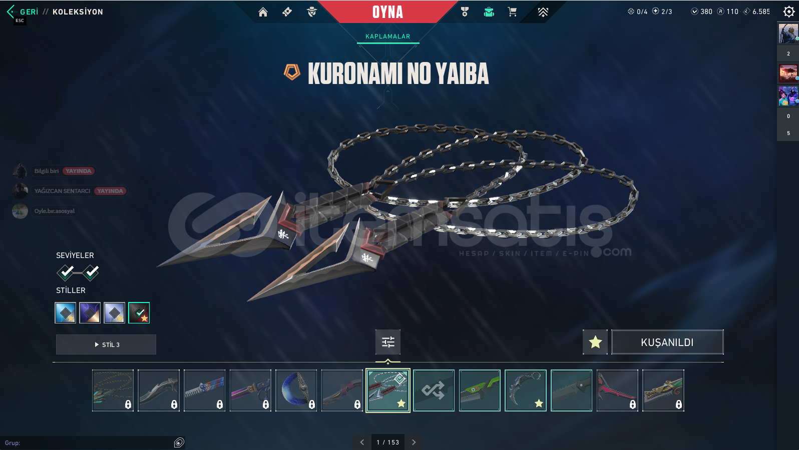 İçindekilerChampions VandalSplashX VandalKaos VandalKuronomi SheriffYağmacı Karambit Kuronami No YaibaBattlepass