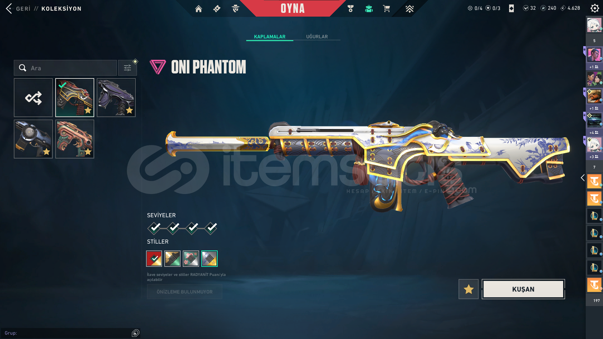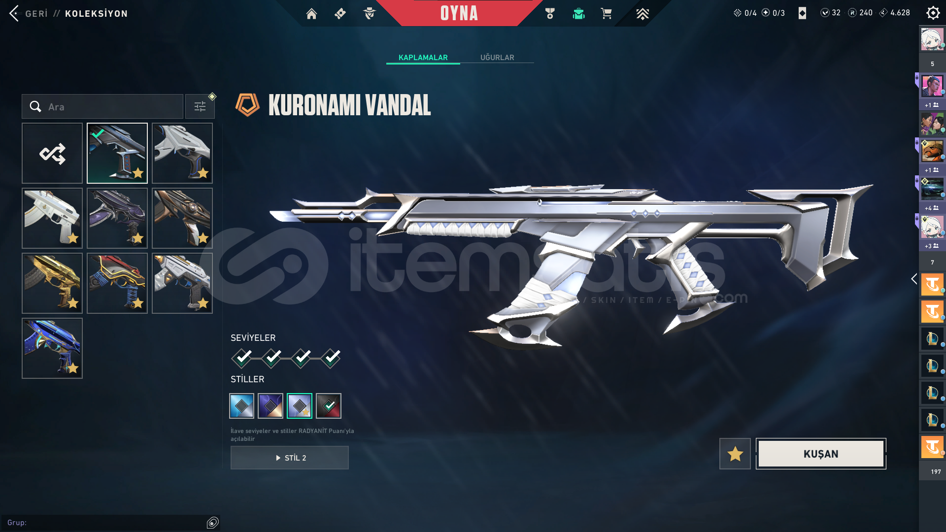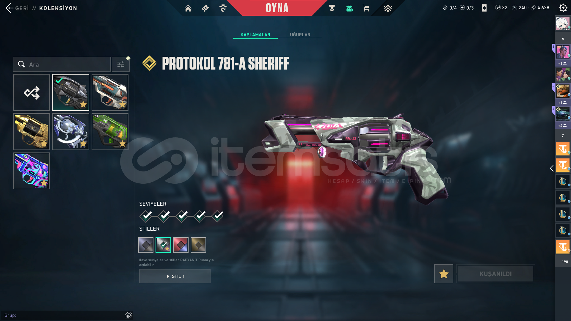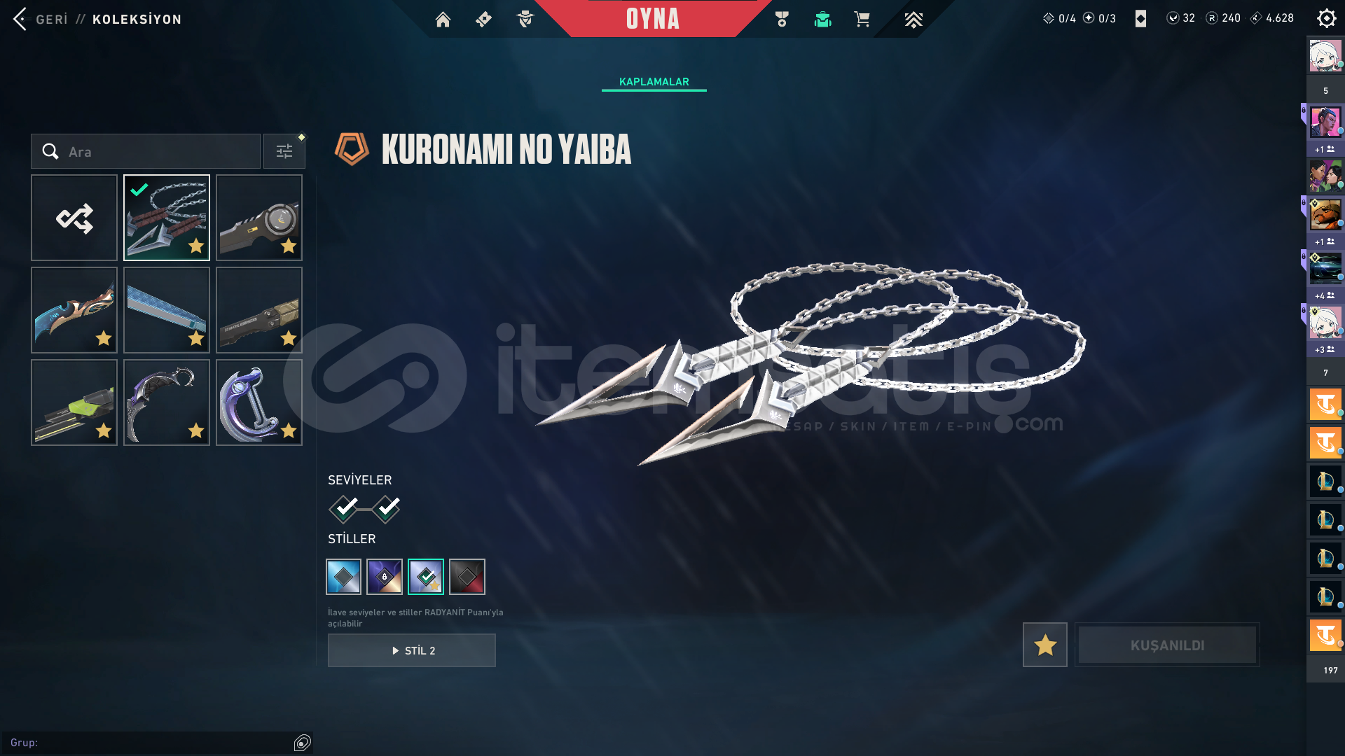 RANK ALTIN 2 (MAX DİA 3 GÖRDÜ)HESAPTA BULUNAN SKİNLERKURONAMI NO YAIBA YAĞMACI KARAMBİTRGX KATANAÖZEL HAREKAT KELEBEKAY YADİGARIDENGEKURONAMI VANDALYAĞMACI VANDALİYON VANDALZAMANIN ÖTESİ VANDAL ONİ VANDALNEPTÜN VANDALUFKUN SINIRI VANDALONİ PHANTOMYAĞMACI PHANTOMİYON OPERATORPROTOKOL 781-A SHERIFF