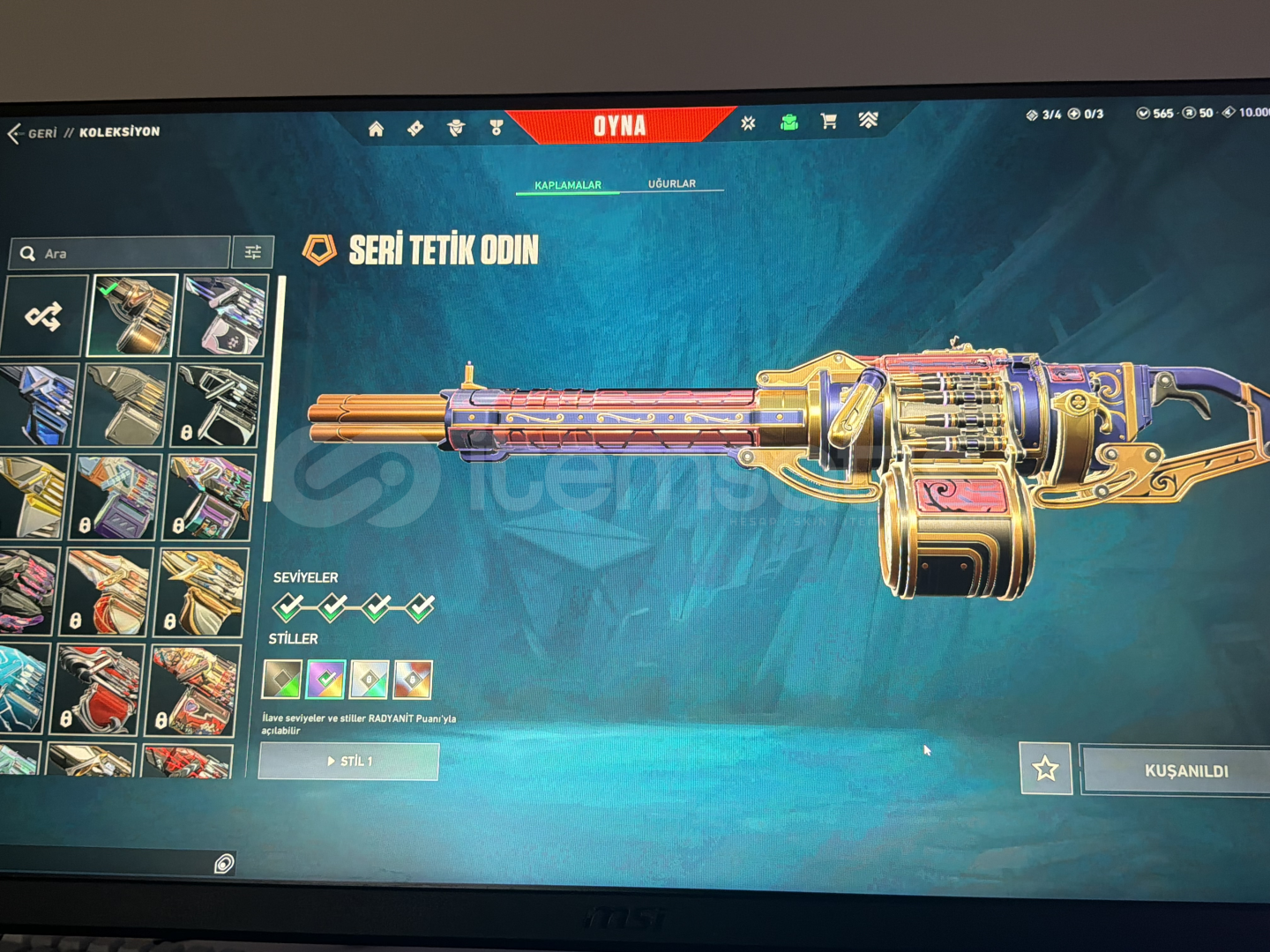 hesapta 10 bıçak var 4’ü animasyonlu, değerli silahlar var faz koruyucu, kuronami, champions 25-24, yitik, anomali, kaos gibi vandallar var, faz koruyucu ve champions seti var, ejder operatör vardır, champions 24 phantom, seri tetik, özel harekat phantom vardır neredeyse her silah doludur geri kalanlara fotoğraflardan ulaşabilirsiniz detaylar için dm atın. Fotograf yükleyemedim herhangi bir sorunuz varsa dmden ulaşab...