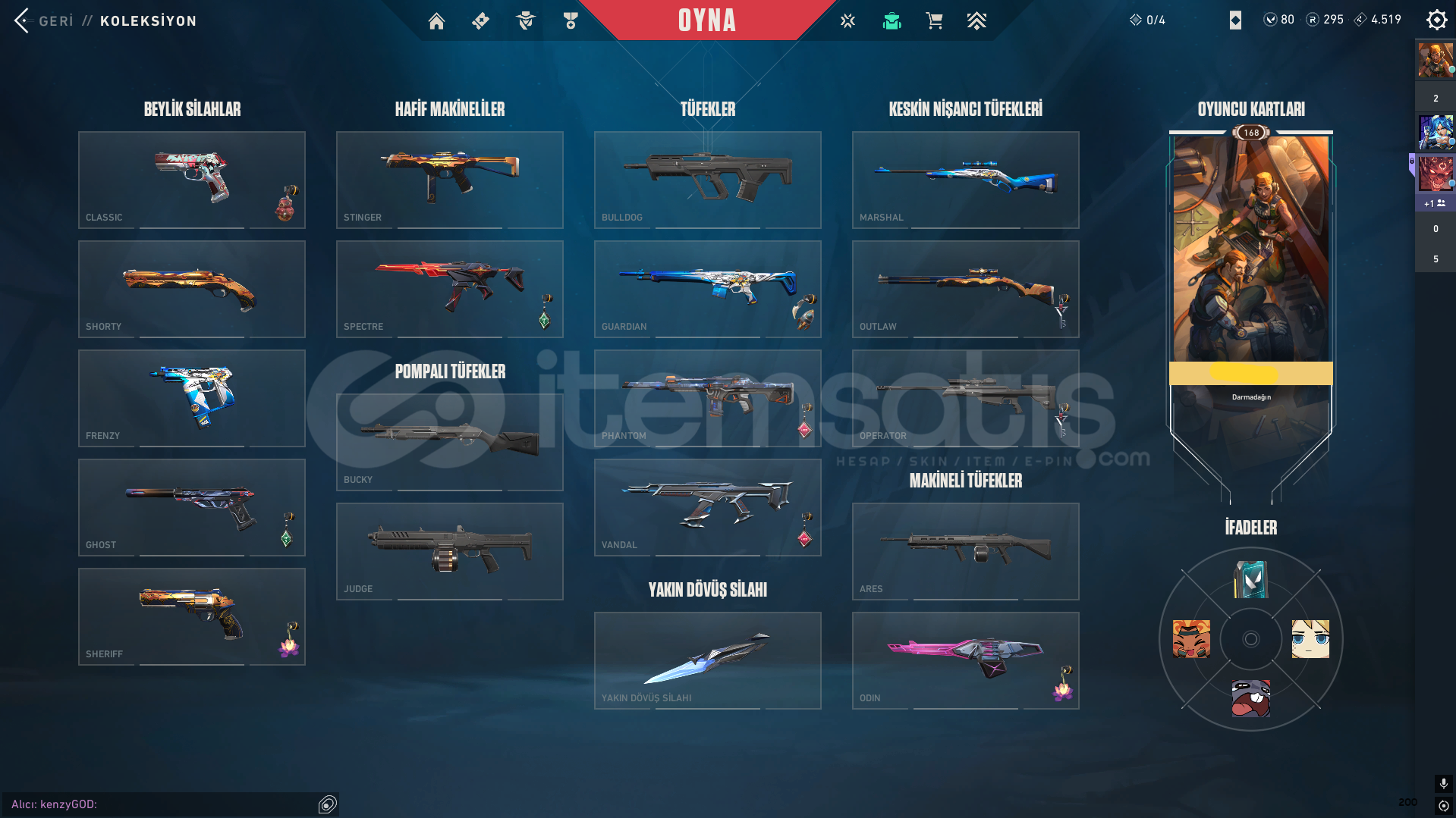 hesapta olan skinlerkuronamı vandalkaosun başlangıcı phantomfaz koruyucu ghostanomali kelebek bıçakkuyruklu yıldız bp bulunmaktadır.zamanında immo görmüş şuanki elosu plat başka hesap alacağımdan satılık