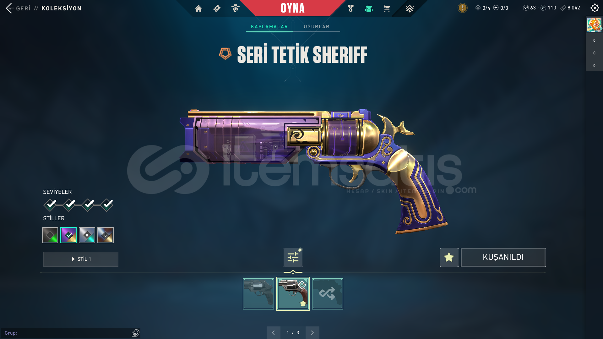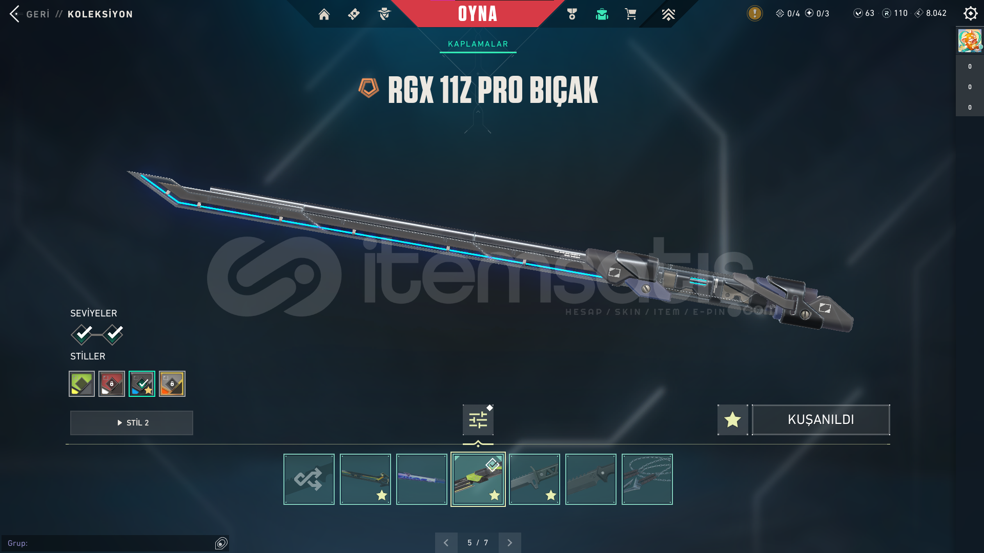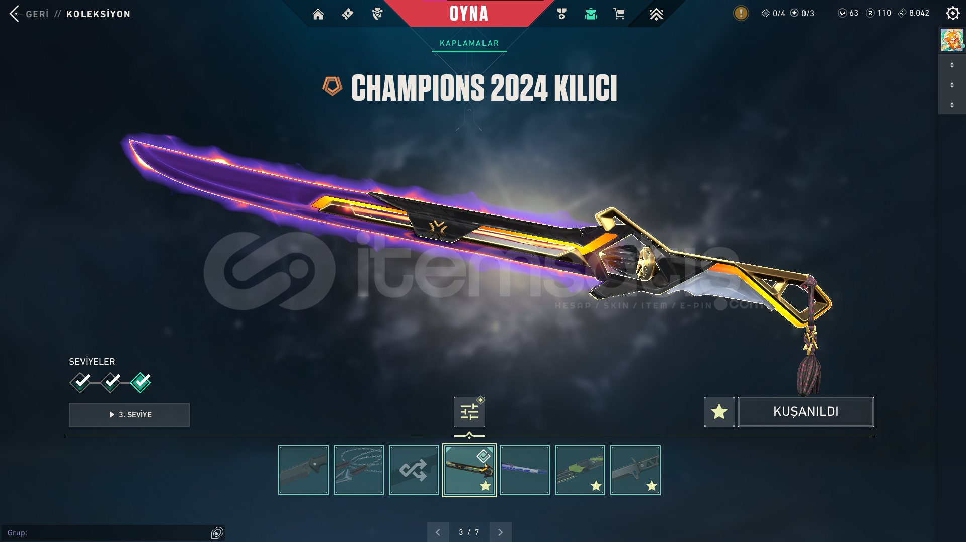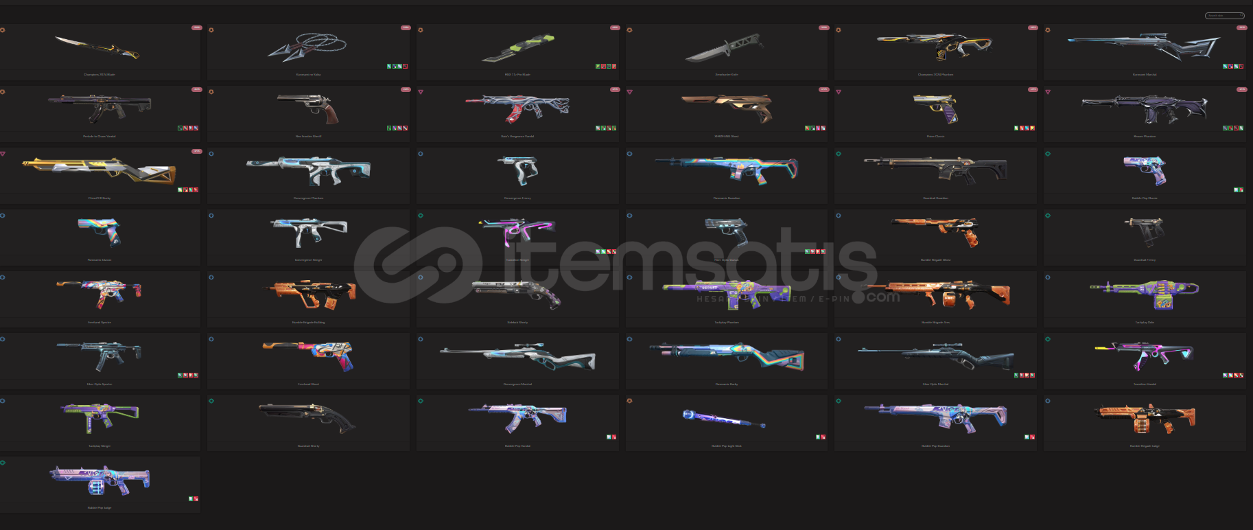 ⭐ Hesapta Champions 2024 Kılıcı , Kuronami no Yaiba , RGX 11z Pro Bıçak , Uzaylı Avcısı Bıçağı , Champions 2024 Phantom , Kuronami Marshal , Kaosun Başlangıcı Vandal , Seri Tetik Sheriff , Gaia'nın İntikamı Vandal , Ulupençe Ghost , Asil Classic , Yağmacı Phantom , Asil//2.0 Bucky , Devinim Vandal , Pop Star Vandal ve Pop Star Işık Çubuğu gibi skinler bulunmaktadır. Görsellerde tüm skinleri görebilirsiniz.