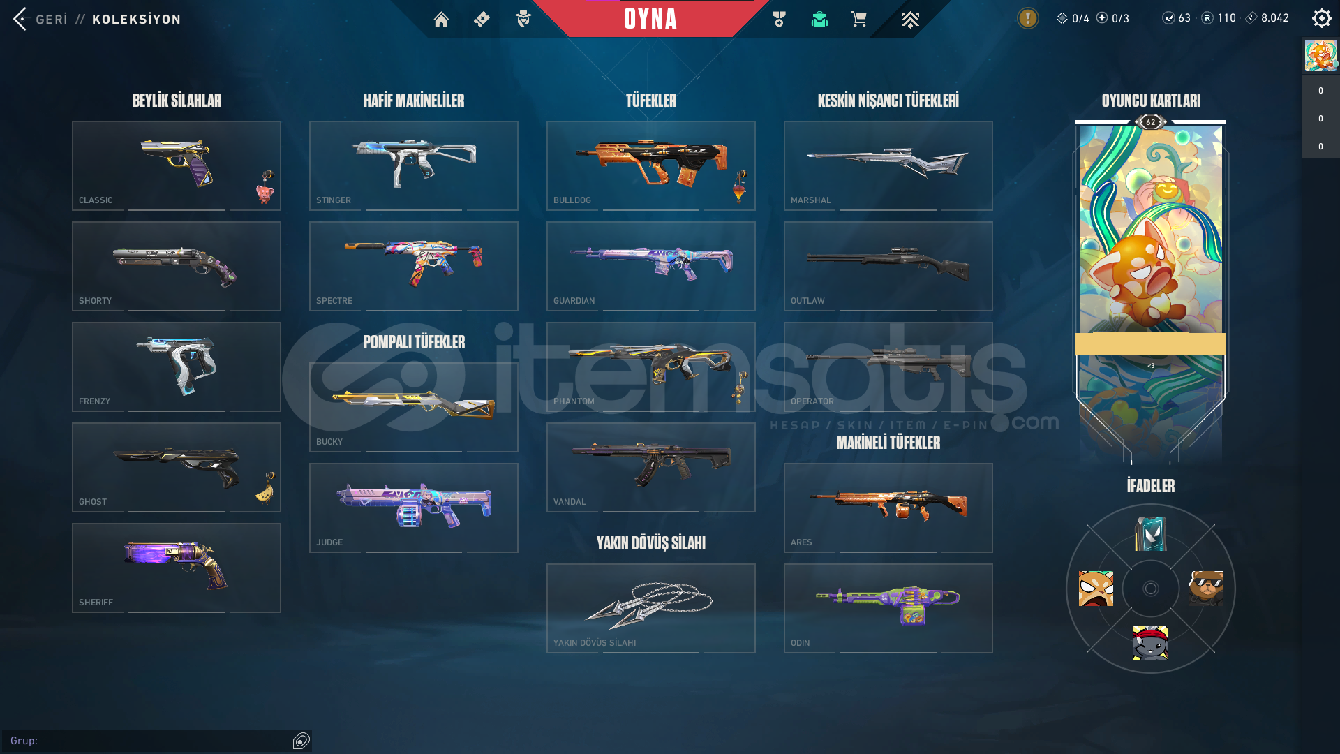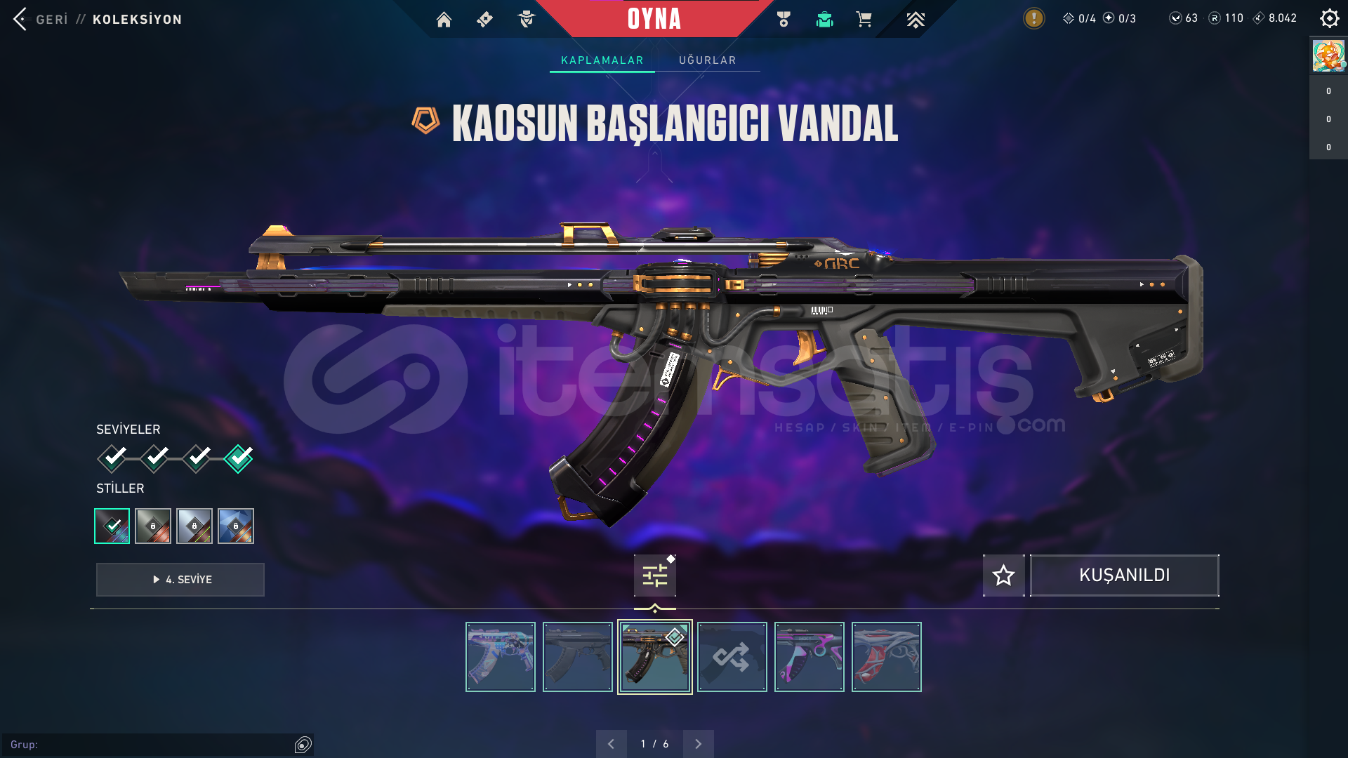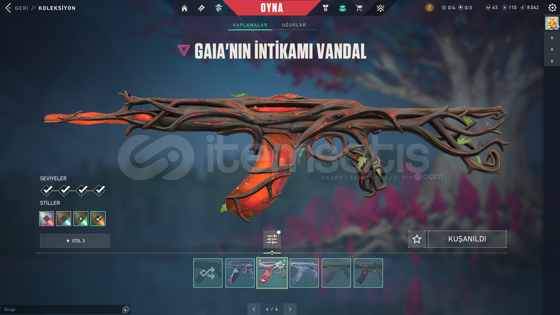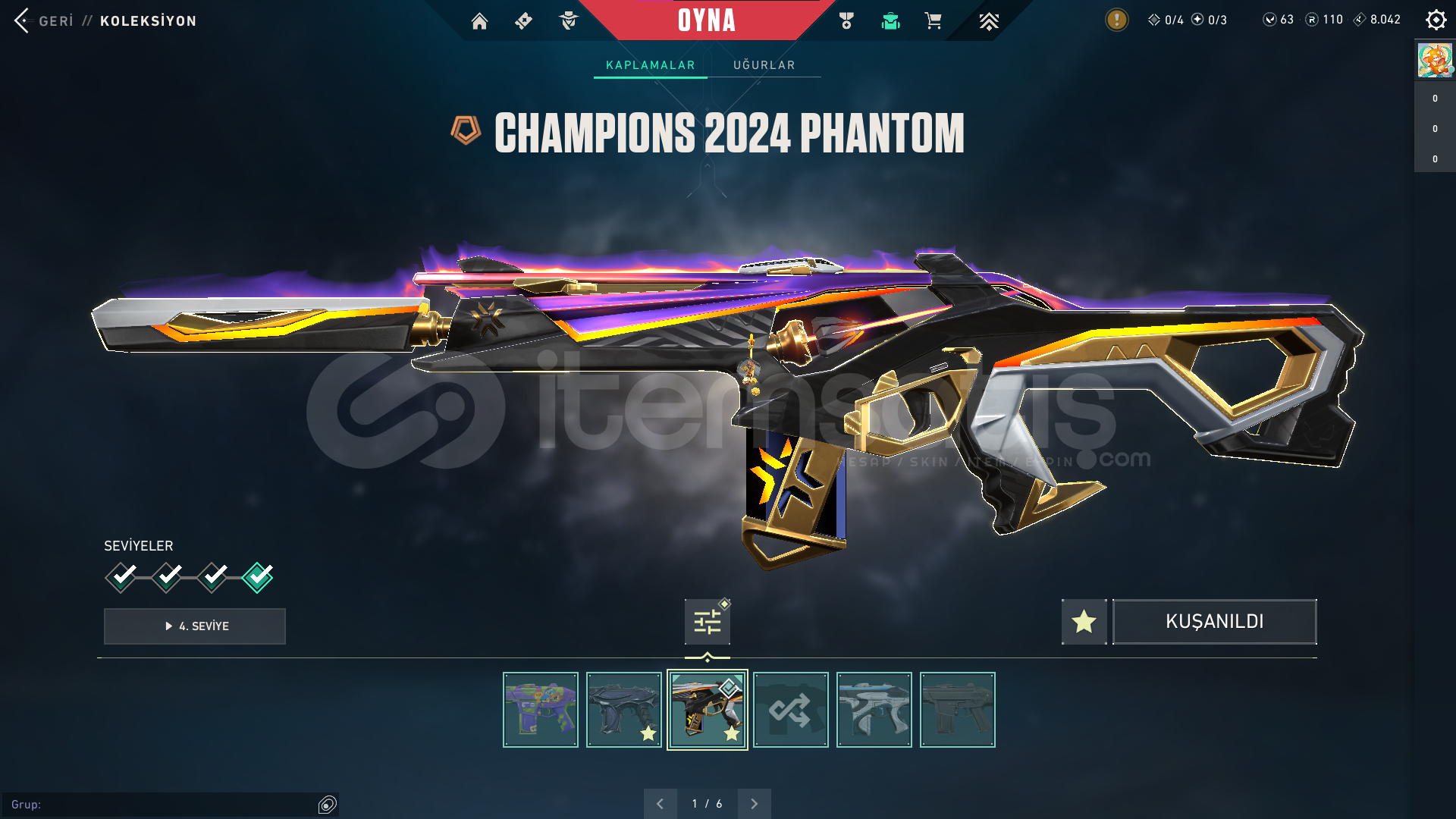 ⭐ Hesapta Champions 2024 Kılıcı , Kuronami no Yaiba , RGX 11z Pro Bıçak , Uzaylı Avcısı Bıçağı , Champions 2024 Phantom , Kuronami Marshal , Kaosun Başlangıcı Vandal , Seri Tetik Sheriff , Gaia'nın İntikamı Vandal , Ulupençe Ghost , Asil Classic , Yağmacı Phantom , Asil//2.0 Bucky , Devinim Vandal , Pop Star Vandal ve Pop Star Işık Çubuğu gibi skinler bulunmaktadır. Görsellerde tüm skinleri görebilirsiniz.