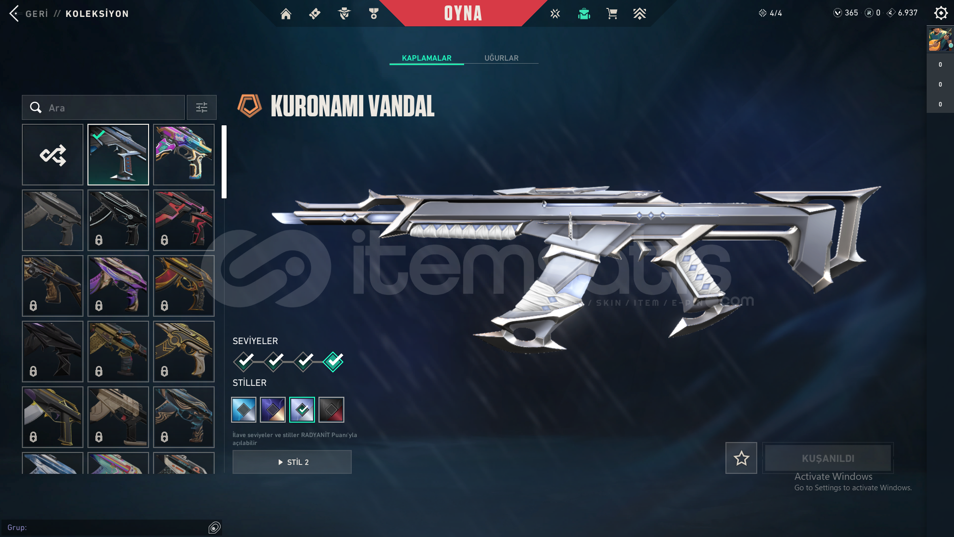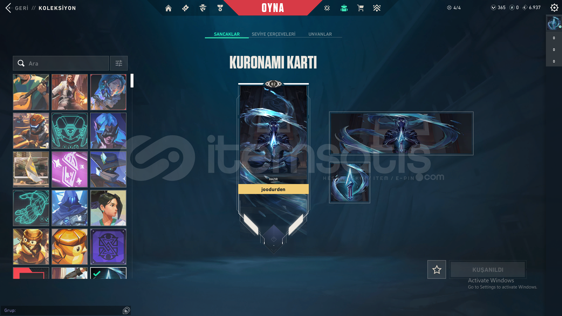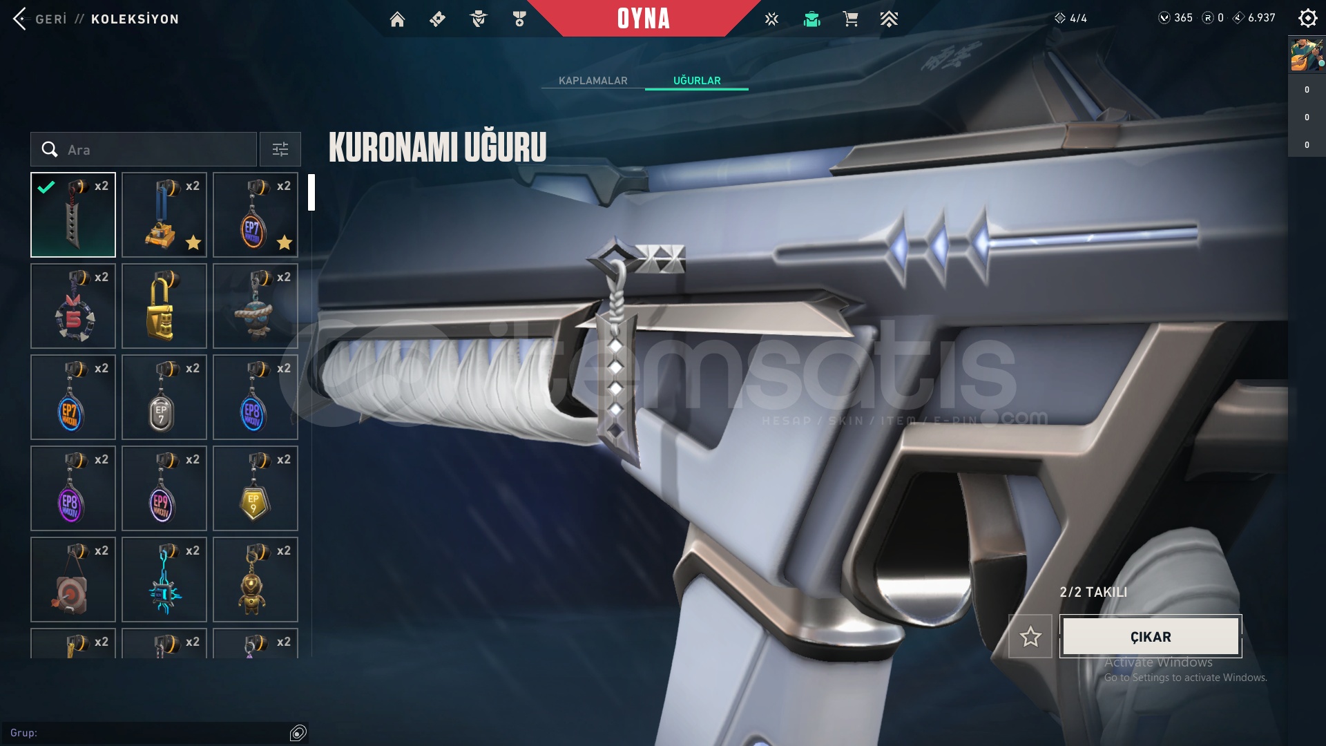 Kuronamı Uğurluk: 475 VPKuronamı Kart: 375 VPKuronamı Sprey: 325 VPKuronamı Vandal: 2.375 VPKuronamı Sheriff: 2.375 VPKuronamı Marshal: 2.375 VPKuronamı Spectre: 2.375 VPKuronamı NO YAIBA: 5.350 VP+Delipop vandal ve battlepass skinleri vardır.Mail devredilecektir.