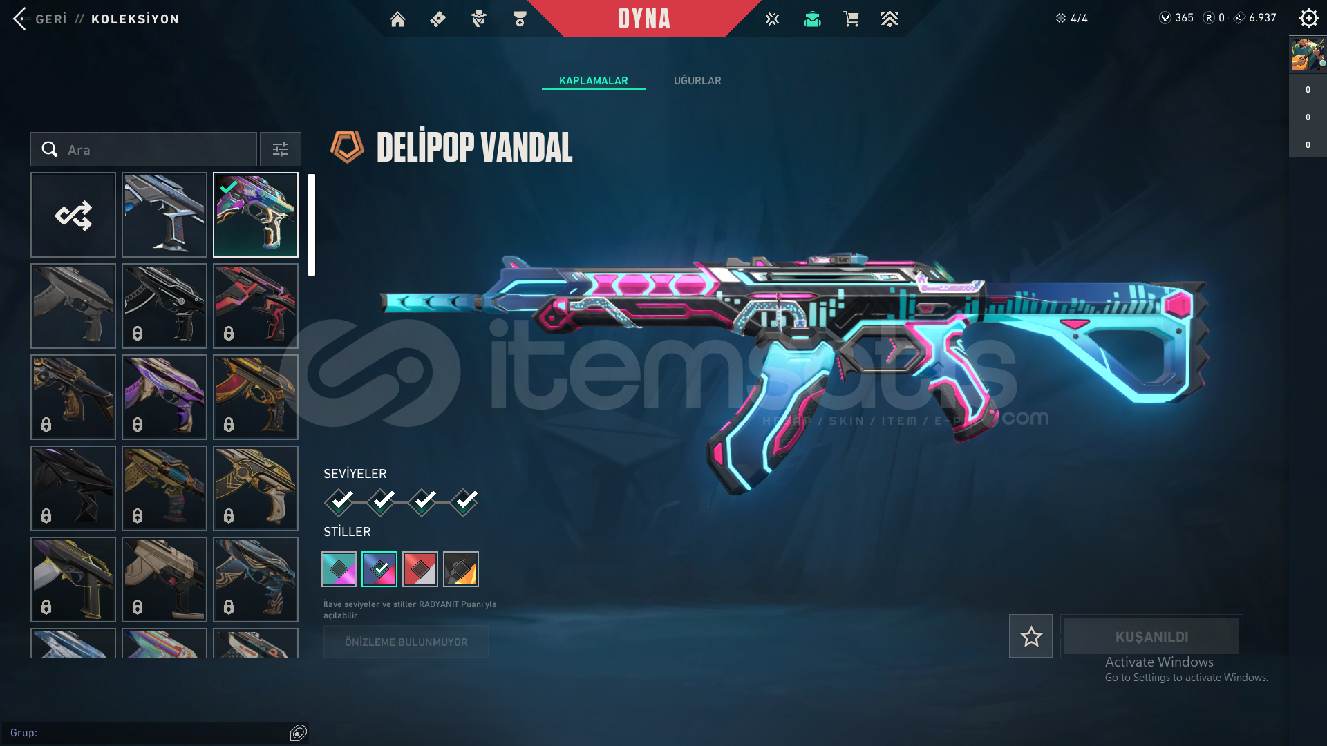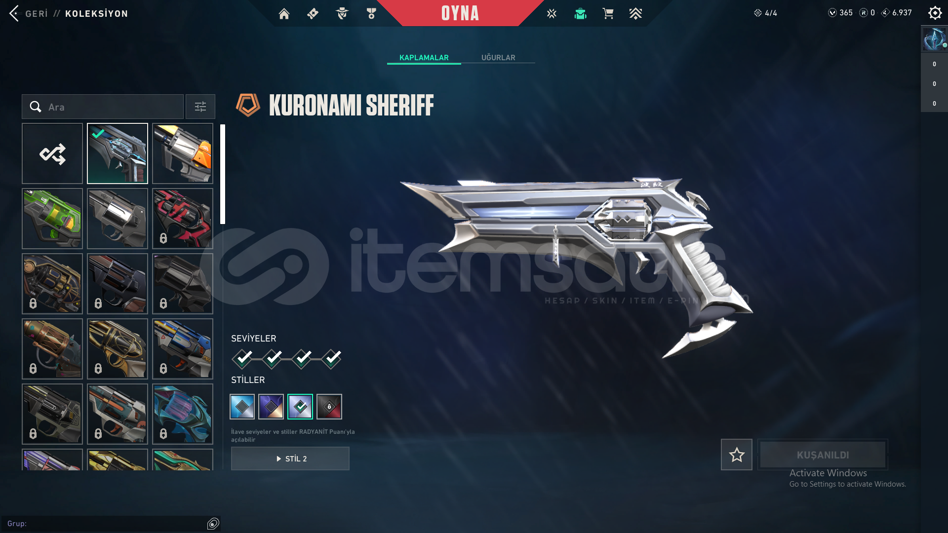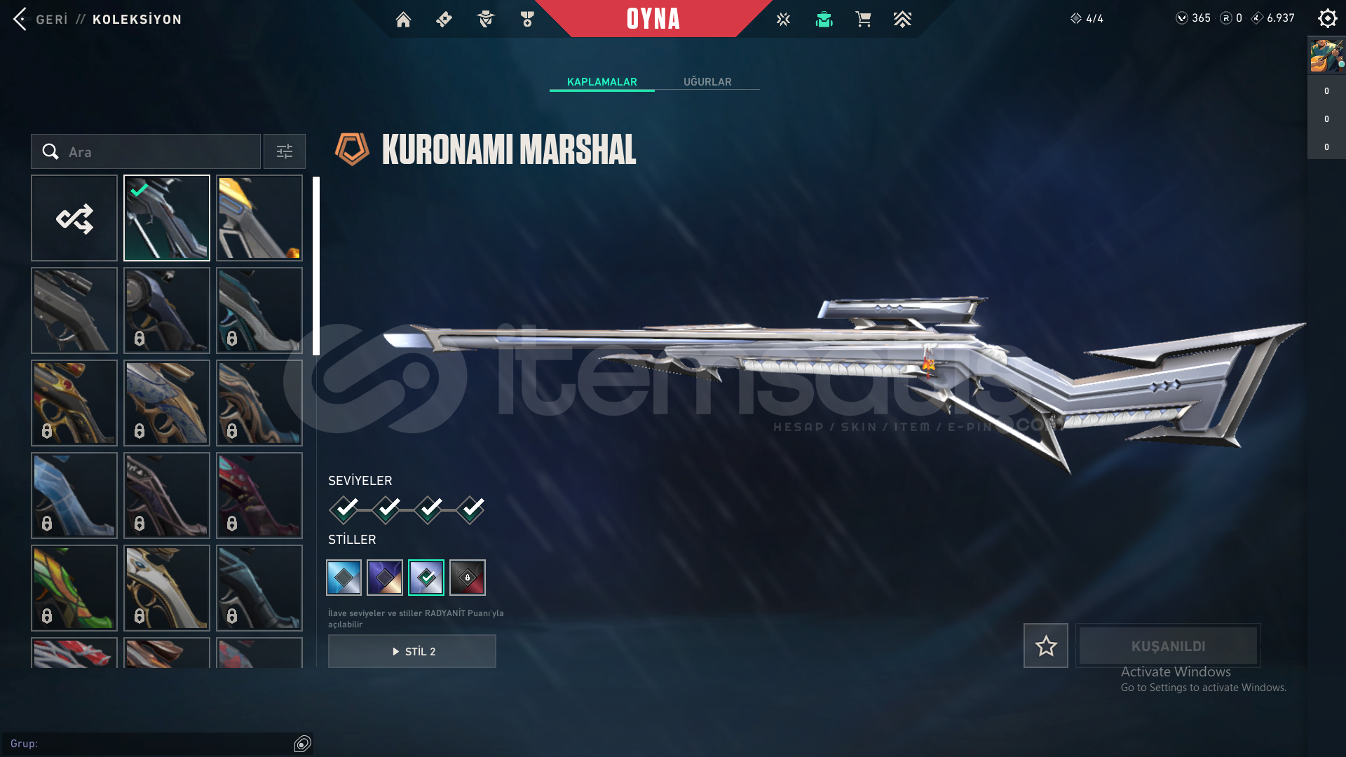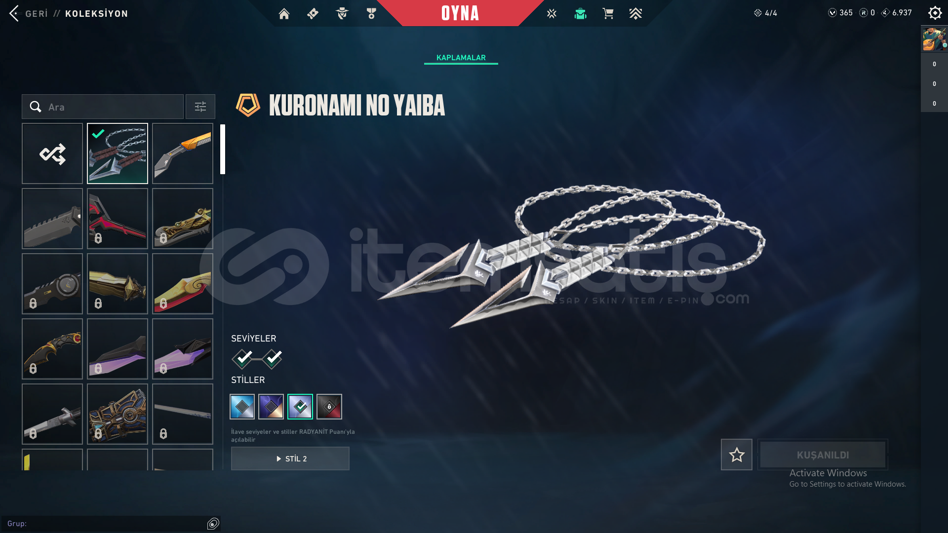 Kuronamı Uğurluk: 475 VPKuronamı Kart: 375 VPKuronamı Sprey: 325 VPKuronamı Vandal: 2.375 VPKuronamı Sheriff: 2.375 VPKuronamı Marshal: 2.375 VPKuronamı Spectre: 2.375 VPKuronamı NO YAIBA: 5.350 VP+Delipop vandal ve battlepass skinleri vardır.Mail devredilecektir.