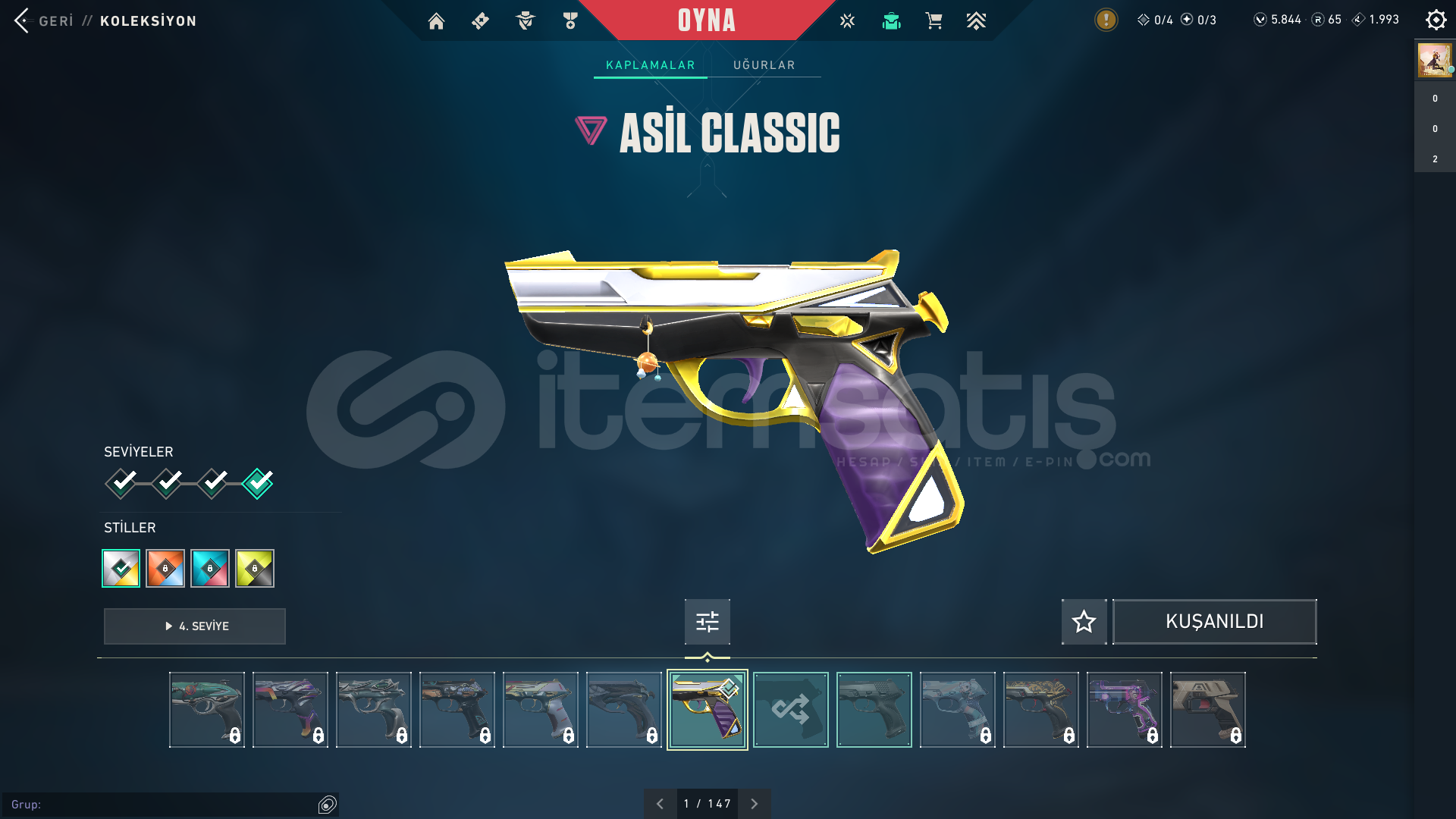 1 SKİNDE 4 FARKLI RENK VARSA VE 4 ÜDE ACIKSA O SKIN 1 DEGIL 4 SKIN OLARAK SAYILMAKTADIR!!
