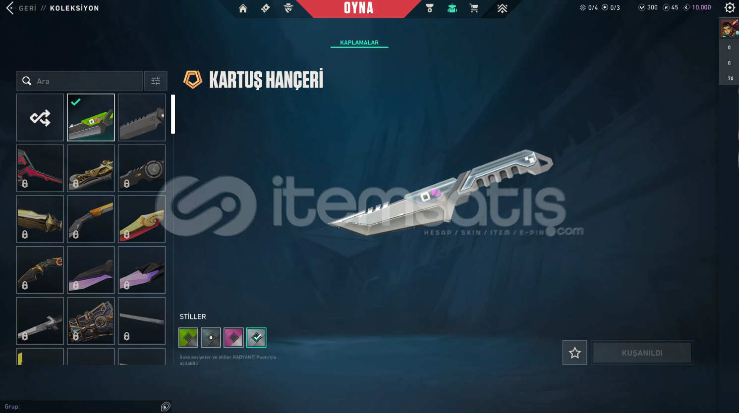 Hesap Hakkında Bilgiler:✨Skinler : 20✨KURONAMİ VANDAL✨ULUPENÇE VANDAL✨İYON VANDAL✨ASİL PHANTOM✨KARTUŞ HANÇERİ BATTLE PASS BIÇAĞI✨Rank: Gümüş 3Hesap Seviyesi: 20 Üzeriİlk Mail: Yokİsim Değişim Hakkı: YokMail Değişimi YapılacakLOL Hesabı: YokSatın alma işlemi tamamlandıktan sonra, tarafınıza sağlanan ...