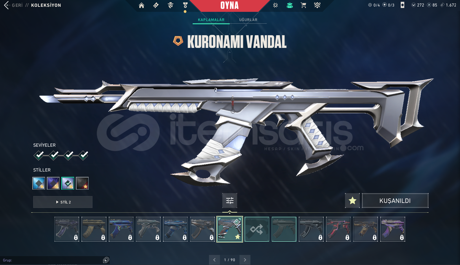 #Fırsat HesabıHesap Hakkında Bilgi;Mail Teslim |Kuronami Vandal + Özel Harekat Phantom + Rgx Sheriff + Yitik Ritüel Bıçağı + Rgx Karambit Hesap UnrankedHesap 90 LevelHesapta 85 Radiant Puanı VarHesabı dilediğiniz gibi kullanabilirsinizSatın alırken video kayıdı açmayı unutmayın