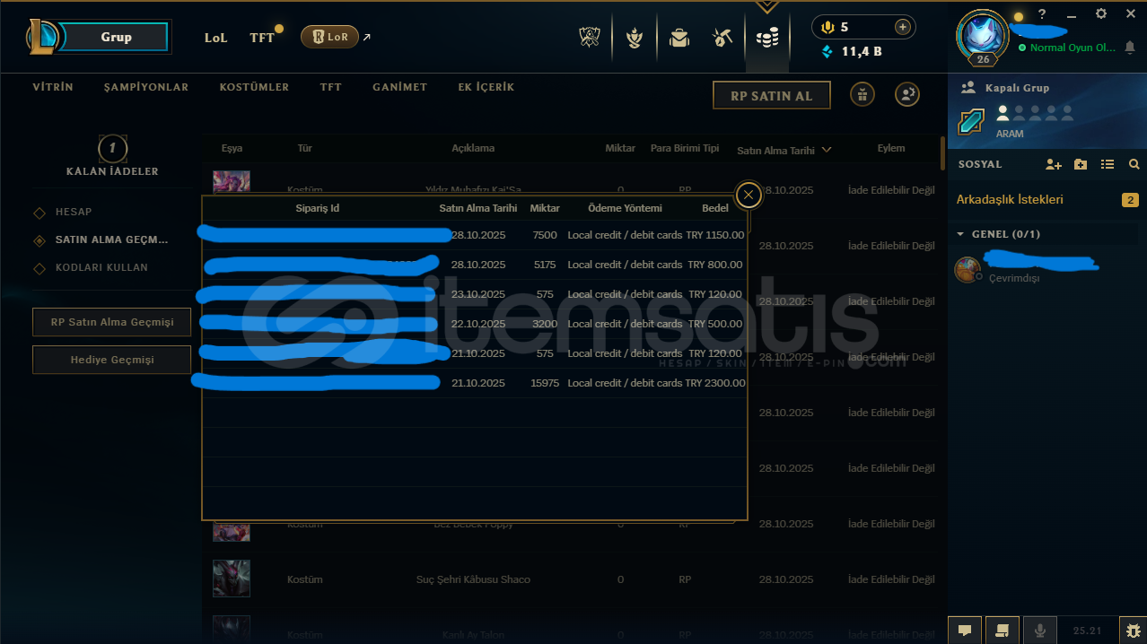 merhabalar lol+valo hesabımı ilanımı tanıtacağım lol hesabında 30 tane değerli kostüm ve ganimetinde açılmayı bekleyen 61 tane en az destansı değerlikte olan skin vardır 5 6 tanesi efsanevi olması lazım kart açıktır ve bitmiştir extradan 117 mor öz var durumda olucaktır 5000tl yatırılmıştır lolüne 29 leveldir ve trdedirvalorant hesabına ge...