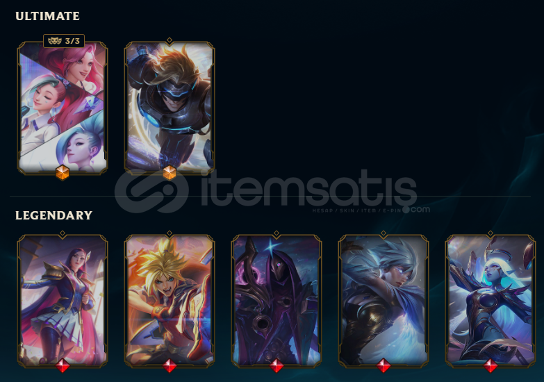 lol hesabı skinlerini ek olarak ekledim yetmediği için hepsini ekleyemedim toplamda +100 skin vardır (lolde)