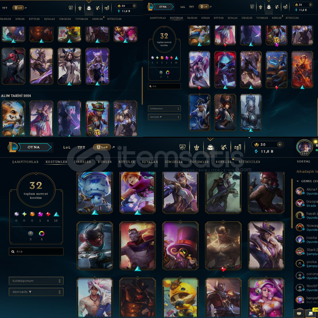 🎮 LoL Hesap: 32 popüler skin, nadir içerikler mevcut