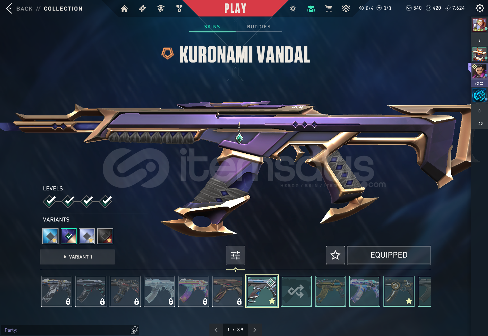 ICINDE KOKEN VANDAL KURONOMI VANDAL VE ARCANE VANDAL OLMAK UZERE 3 TANE VANDAL SKINI VARDIR