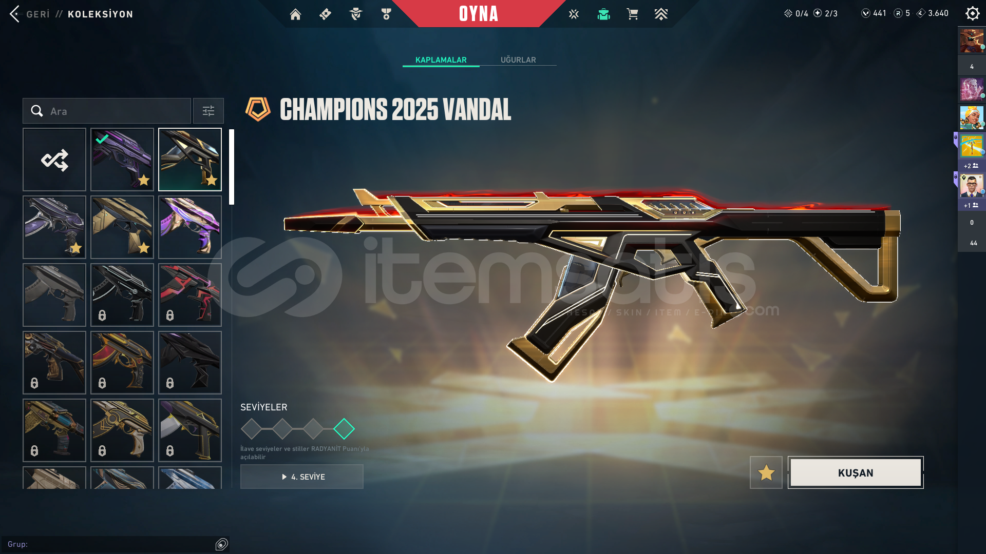 Hesaplar Resimdeki GibidirSatın alım sonrası ANINDA teslim edilir.Hesaplarımız PAZARLIĞA UYGUNDUR.Aklınıza takılan bir soru olursa bizlere 7/24 yazabilrisiniz, çok hızlı şekilde cevap vereceğiz ;)-----------Hesabın İçindeki Paralı Skinler:Champions 2025 VandalNocturnum PhantomChampions 2025 Butterfly KnifeOverlay DaggerEX.O VandalInterhelm SwordMystbloom SheriffAraxys VandalReaver Operato...