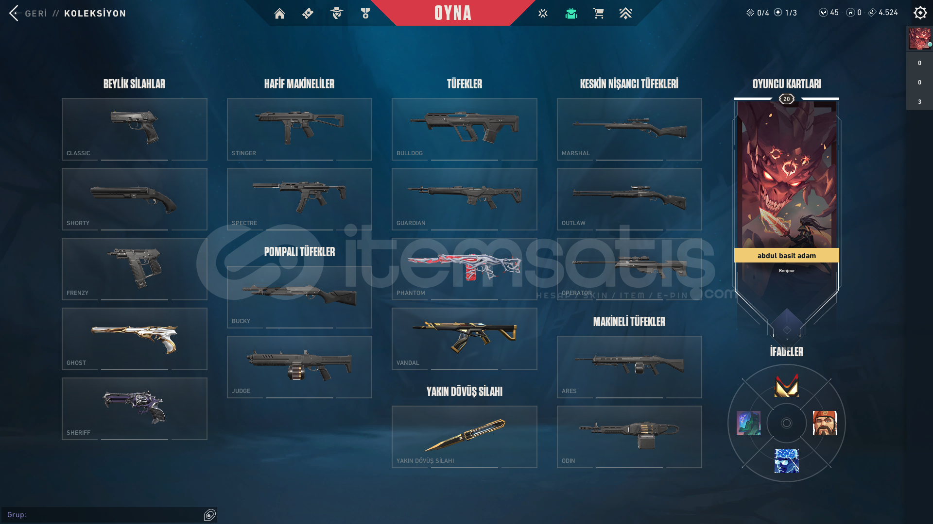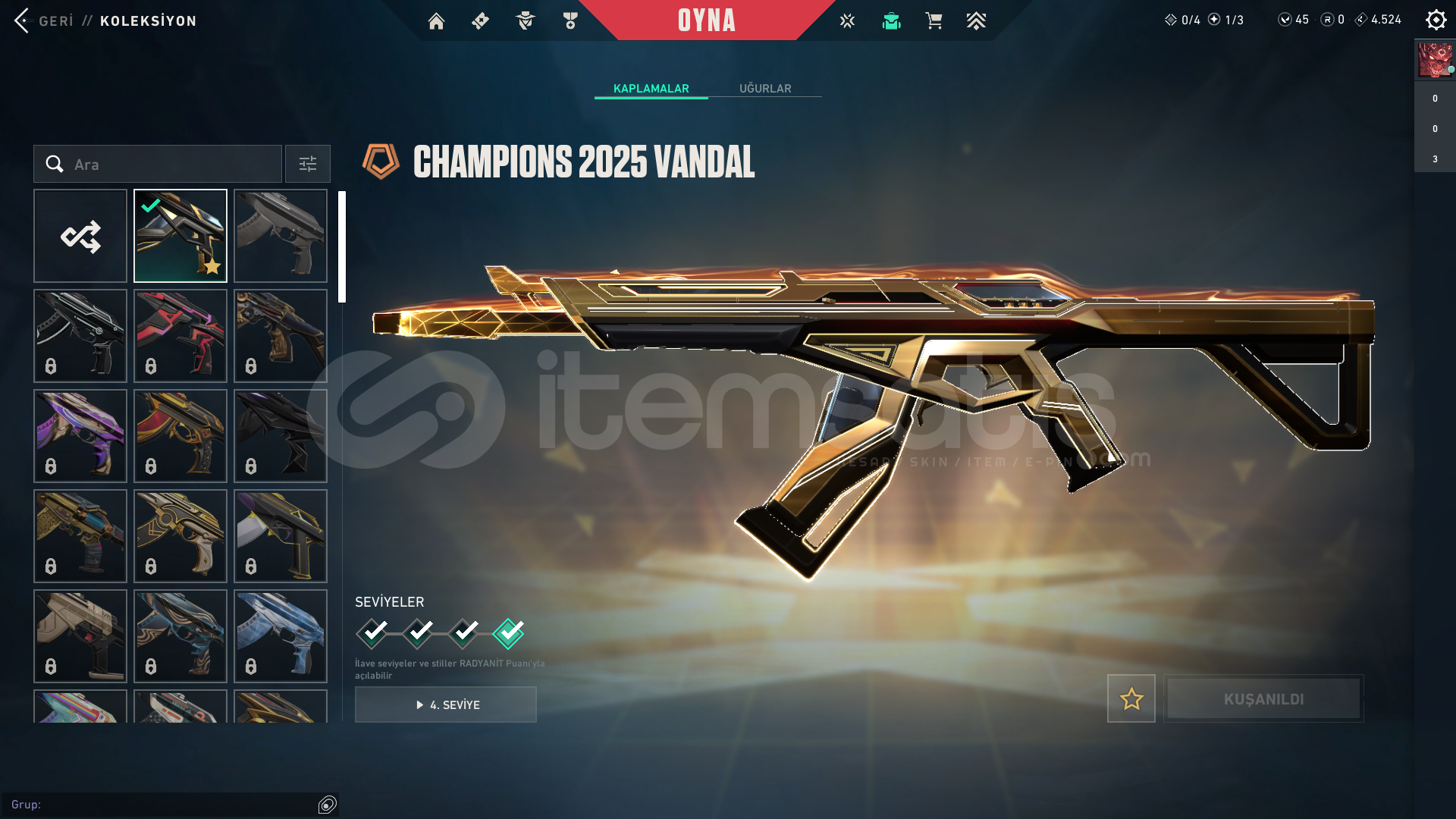 Hesaplar Resimdeki GibidirSatın alım sonrası ANINDA teslim edilir.Hesaplarımız PAZARLIĞA UYGUNDUR.Aklınıza takılan bir soru olursa bizlere 7/24 yazabilrisiniz, çok hızlı şekilde cevap vereceğiz ;)-----------Hesabın İçindeki Paralı Skinler:Champions 2025 KelebekChampions 2025 VandalGaia PhantomFatih GhostYağmacı Sheriff-----------VadiHesap İyi Oyunlar Diler...