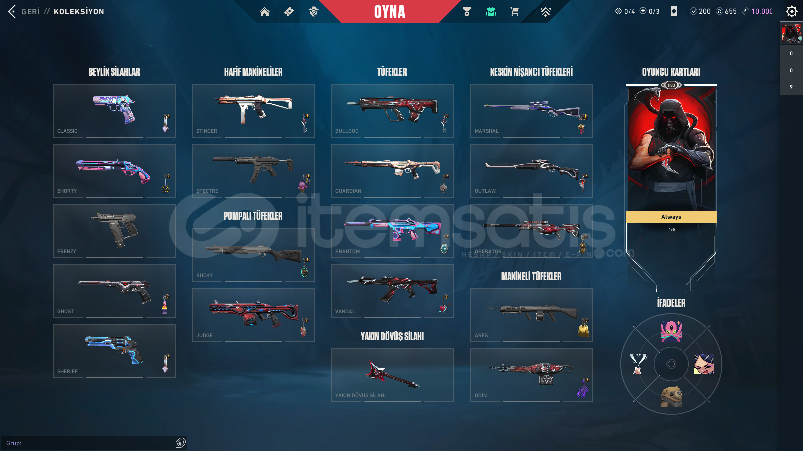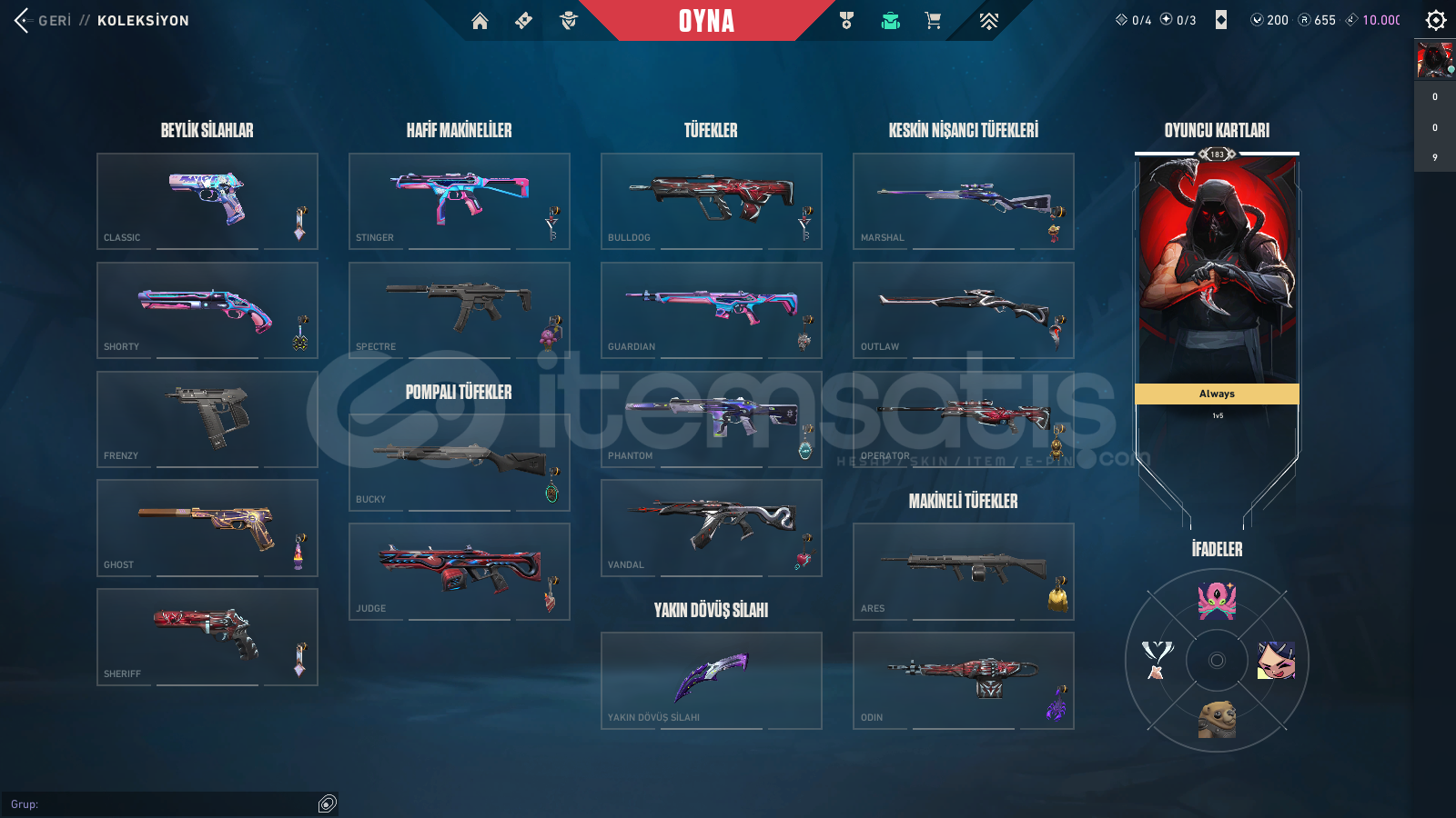 En az 20-30 arası skin bulunmaktadır.!