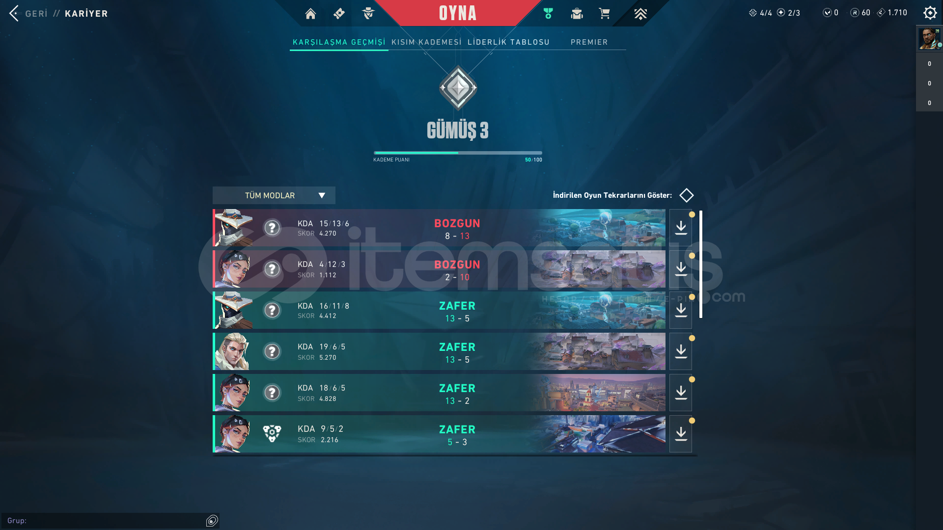 Hesap Gümüş 3 Rankındadır.