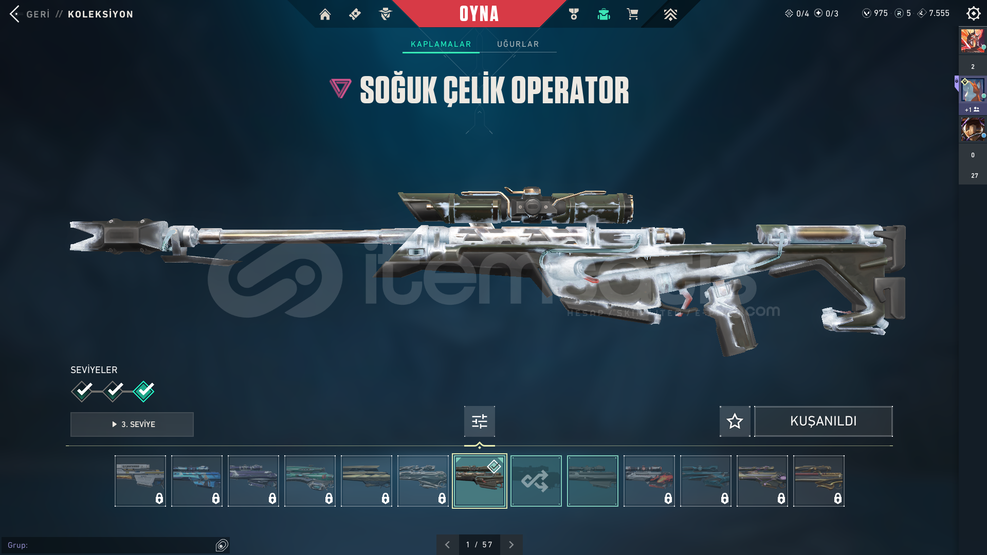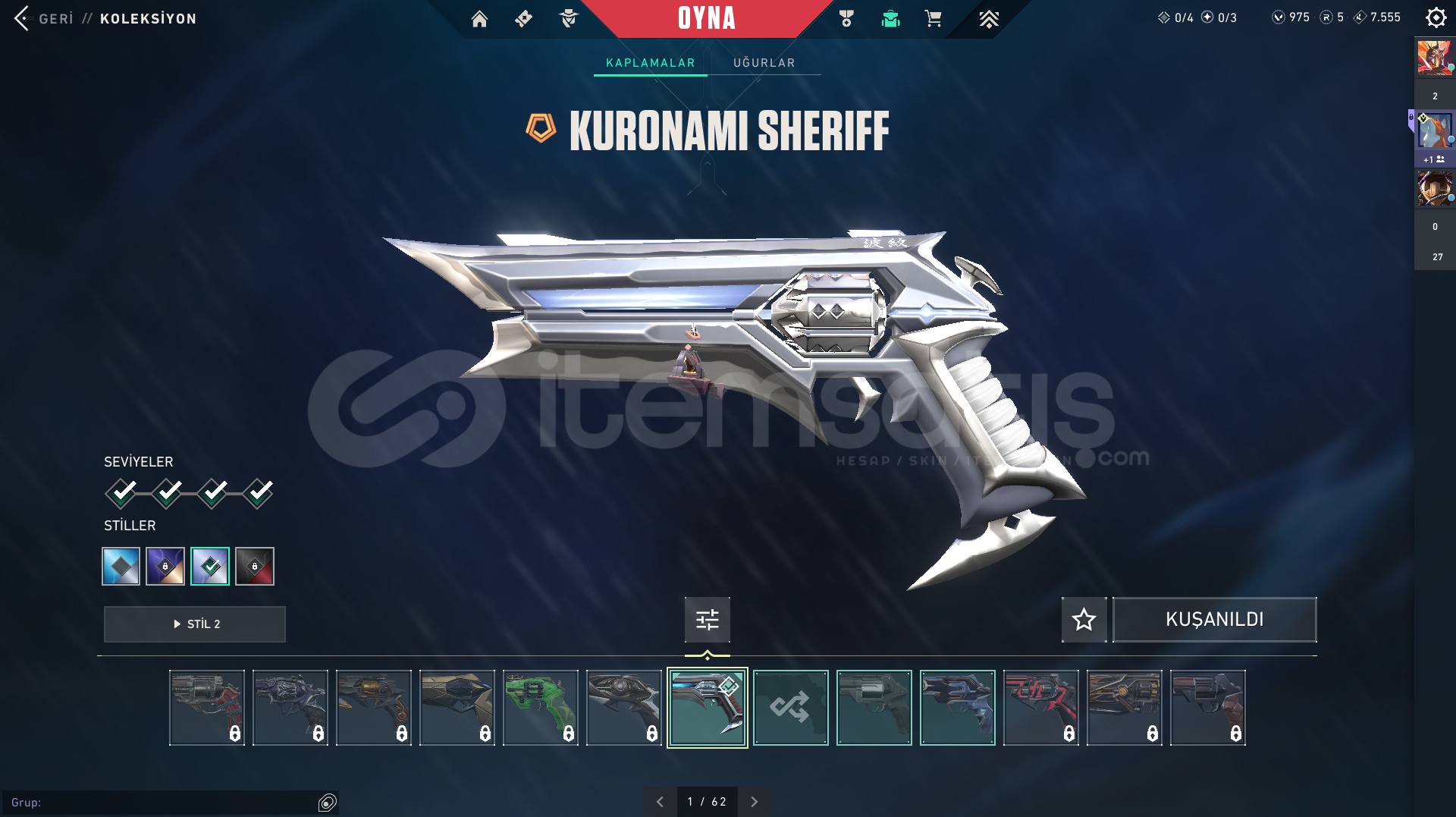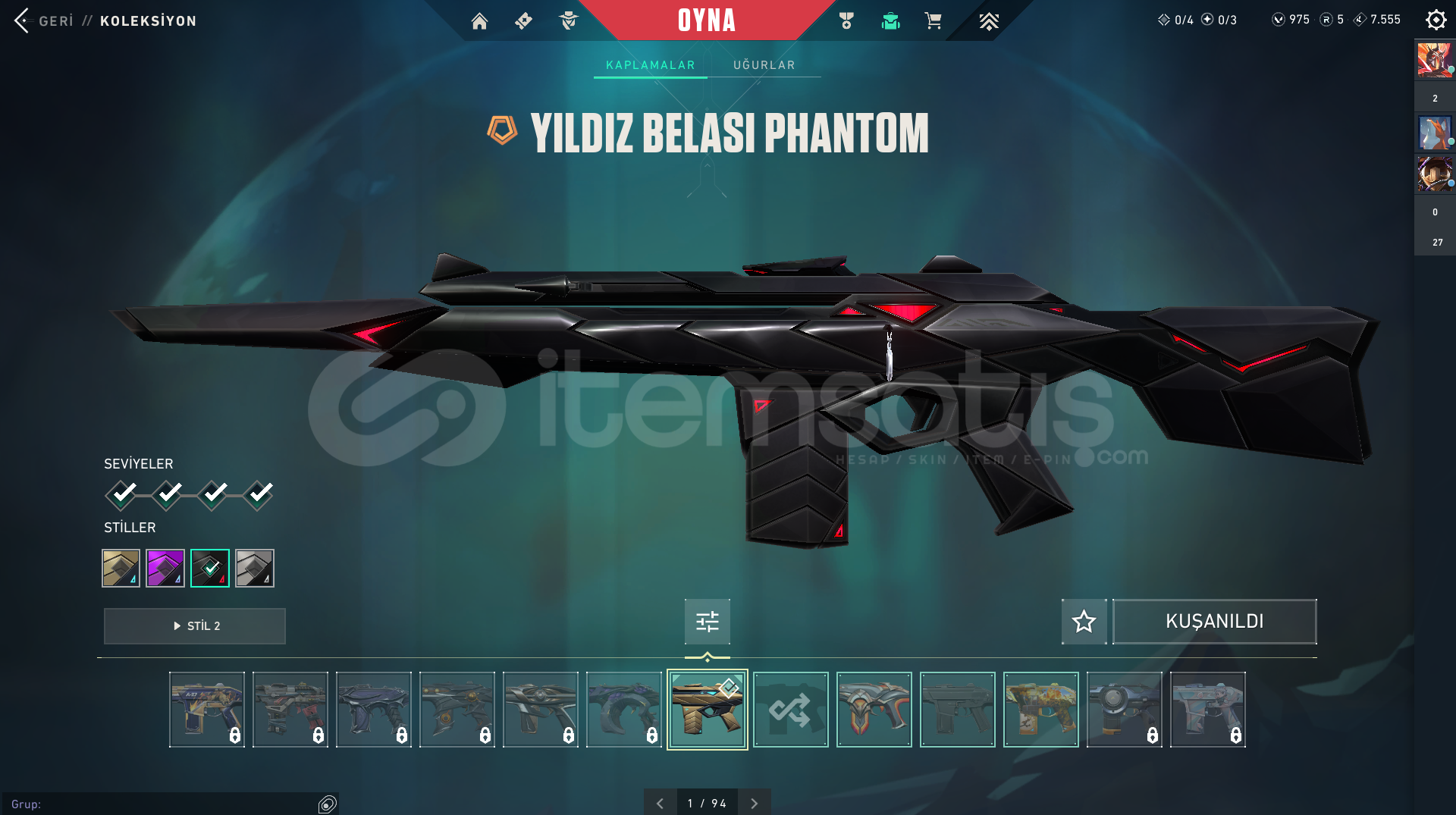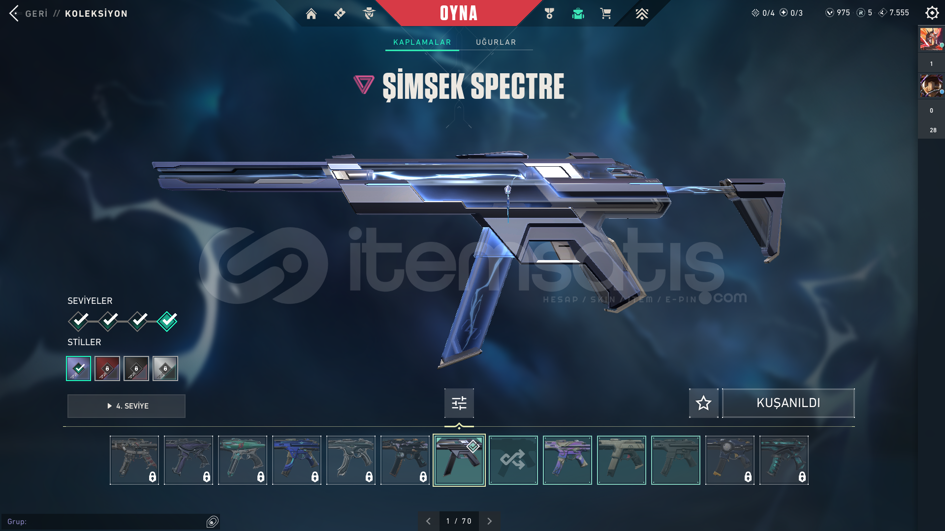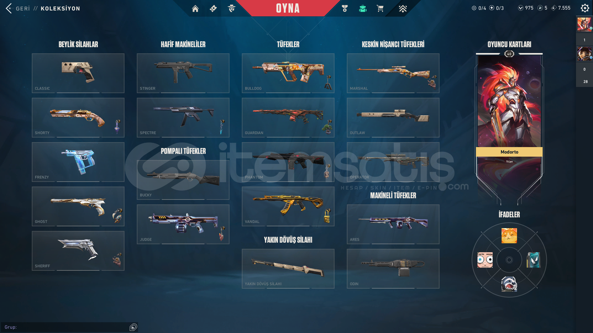 Pazarlık Vardır2 Tane Battle Pass Açılmıştırİçinde 975 Vp VardırŞimşek Spectre-Gaia Guardian-Faz Koruyucu Vandal-Yıldız Belası Phontem-Soğuk Çelik Op-Fatih Ghost-Krunomi Sheriff
