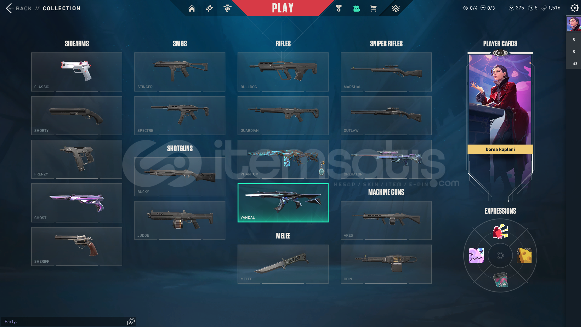 HESAPTA:Anomali Vandal, Gaia Phantom, Spectrum Classic, Ulupençe Ghost, Seri Tetik Sheriff, Cesur Yürek Operatör ve Uzaylı Avcısı Bıçak bulunmaktadır.Totalde 15.000 VP ve 3500 liradan fazla yatırılmıştır.Hesap Gold 3, peak Plat 2'dir.Mail değişimi yapılacak.