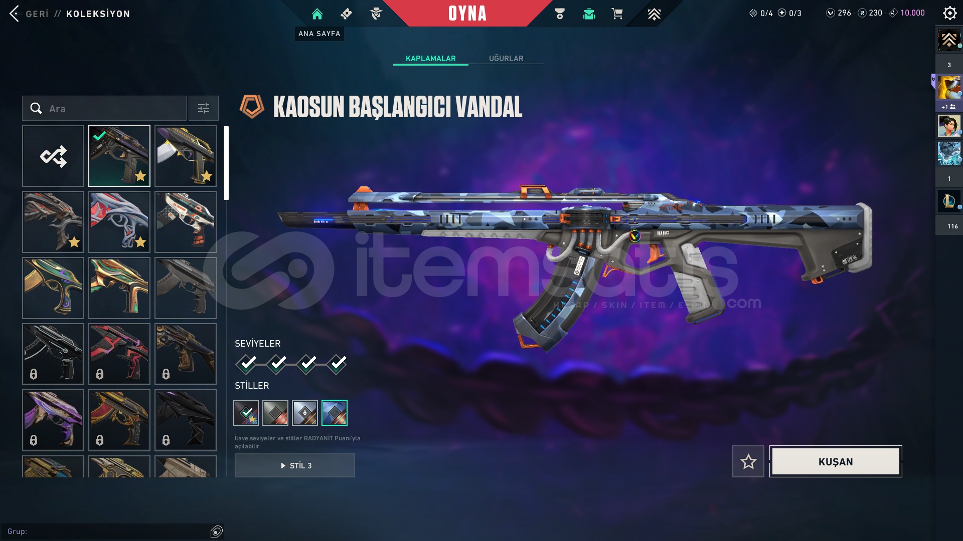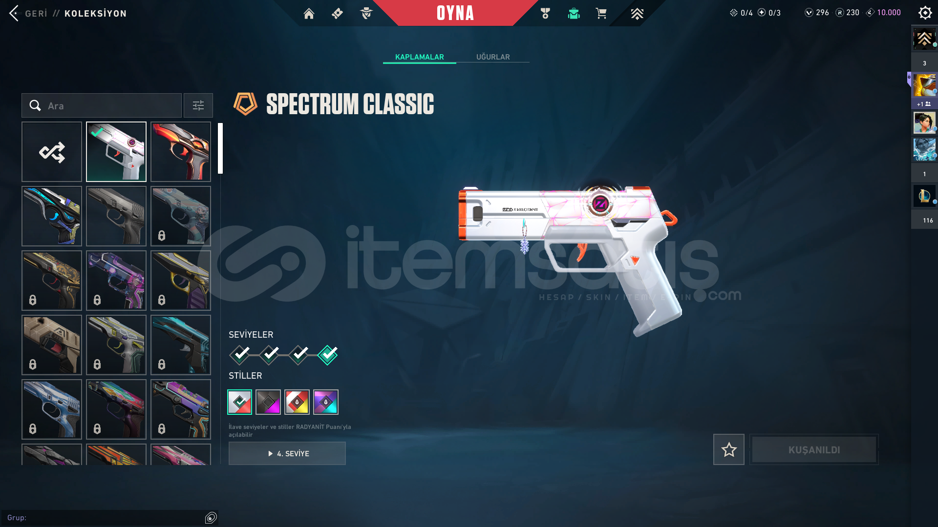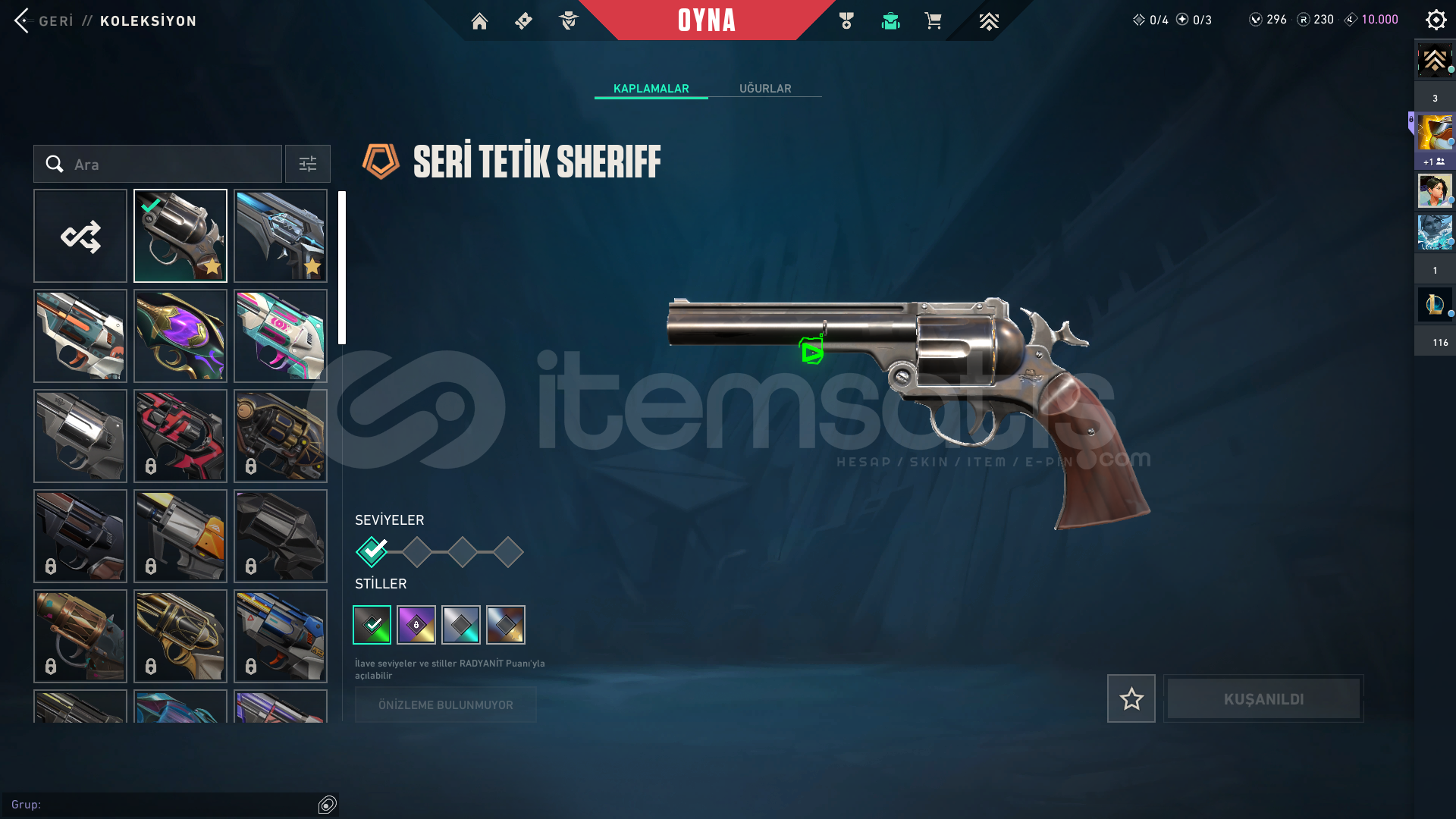Hesaplar Resimdeki GibidirSatın alım sonrası ANINDA teslim edilir.Hesaplarımız PAZARLIĞA UYGUNDUR.Aklınıza takılan bir soru olursa bizlere 7/24 yazabilrisiniz, çok hızlı şekilde cevap vereceğiz ;)-----------Hesabın İçindeki Paralı Skinler:Neo Frontier PhantomSandswept DaggerBoundNeo Frontier SheriffPrelude to Chaos VandalSpectrum ClassicKuronami SheriffBlastX PhantomPrimordium VandalReave...
