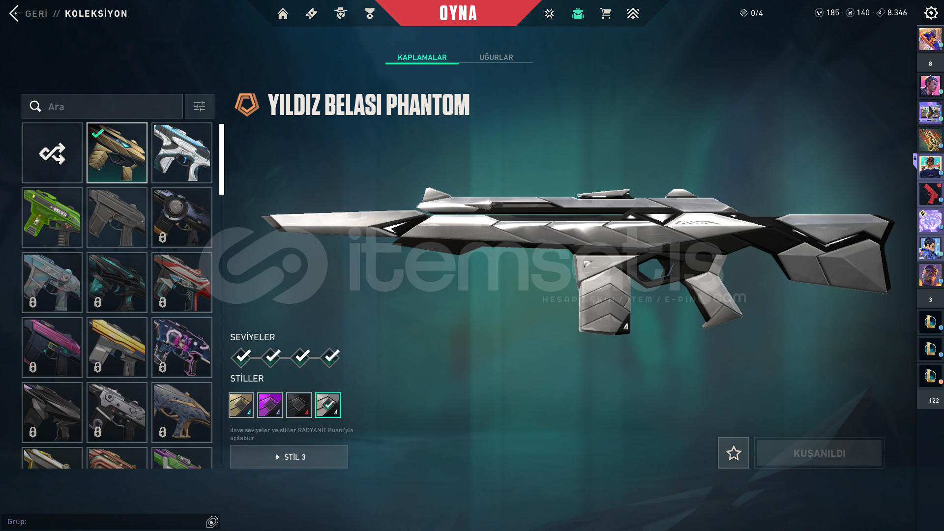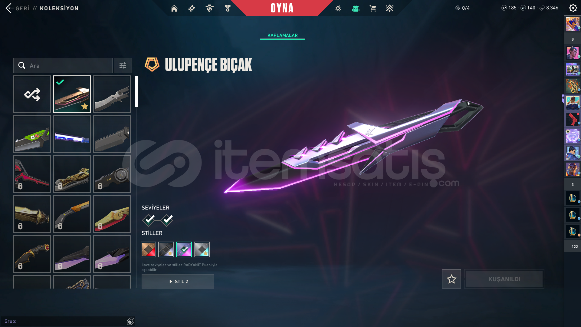 • Hesabın İçindeki Paralı Skinler: