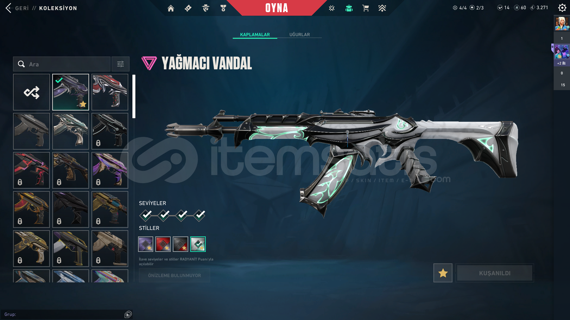Hesaplar Resimdeki GibidirSatın alım sonrası ANINDA teslim edilir.Hesaplarımız PAZARLIĞA UYGUNDUR.Aklınıza takılan bir soru olursa bizlere 7/24 yazabilrisiniz, çok hızlı şekilde cevap vereceğiz ;)-----------Hesabın İçindeki Paralı Skinler:Striker KnifeRGX 11z Pro FireflyCelestial FanSingularity PhantomMagepunk SpectreReaver VandalOni PhantomSovereign MarshalIon SheriffRadiant Crisis 001 P...